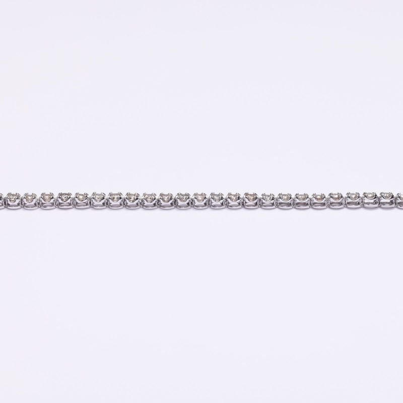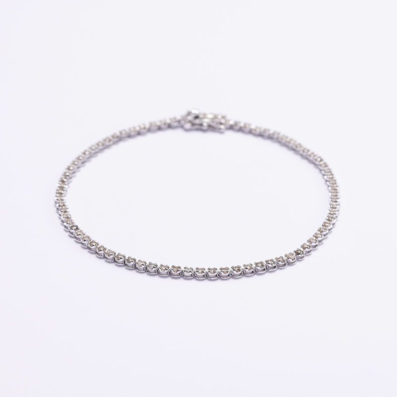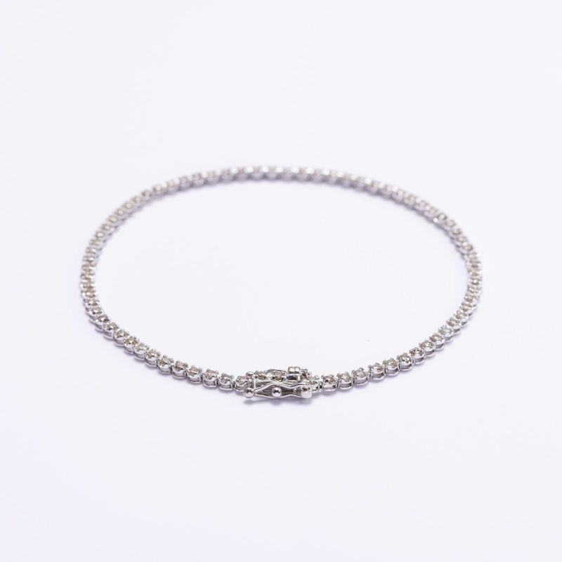 K18ホワイトゴールドのラインブレスレットです。ダイヤモンドの輝きがお手元を飾ります。
