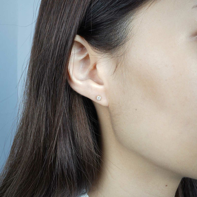 おわん型のスタッドピアスのご紹介です。ピアスの台の部分に透かしの模様が入っていて、正面から見たときと側面から見たときで印象が大きく異なります。