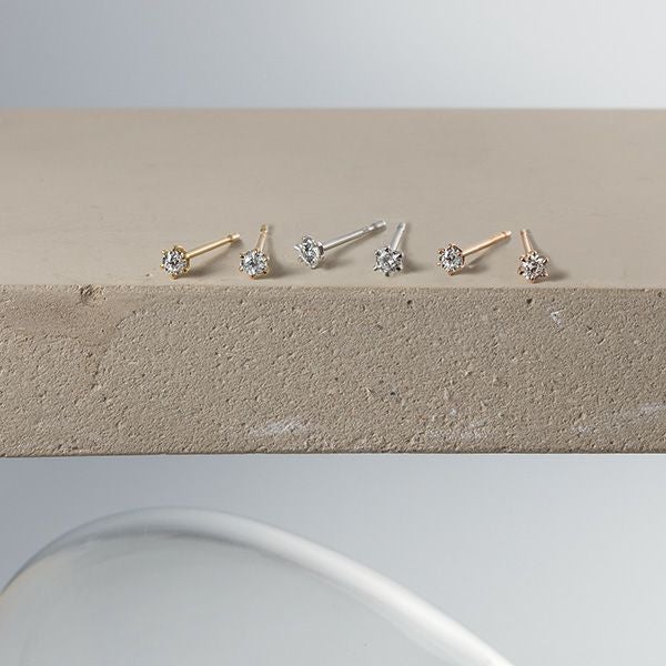 6本爪にダイヤモンドがセッティングされた定番ピアス。季節もTPOも選ばない、どんなシーンにも合わせやすいスタンダードアイテム。