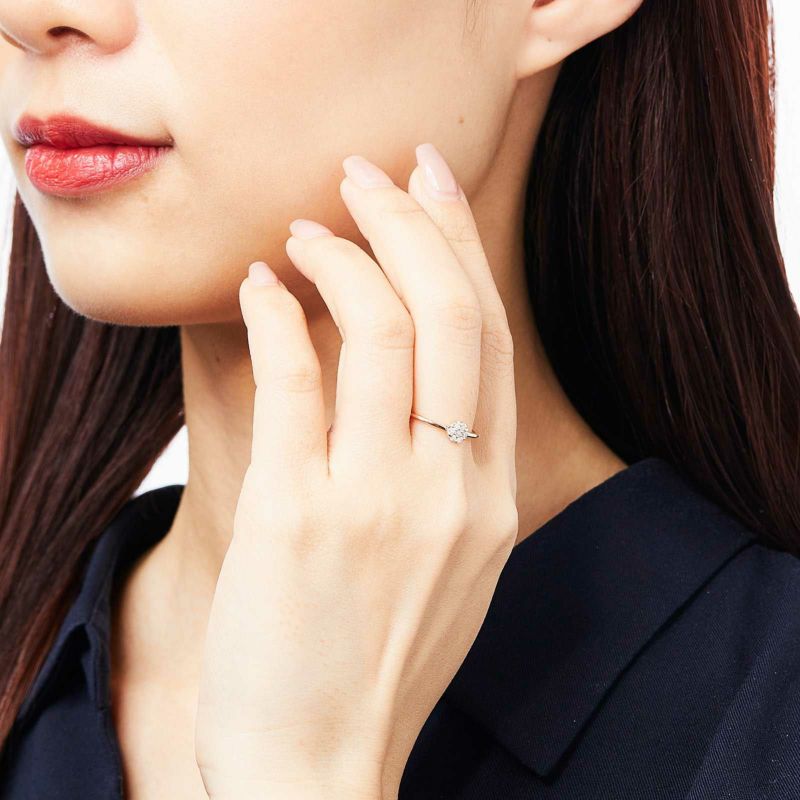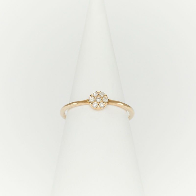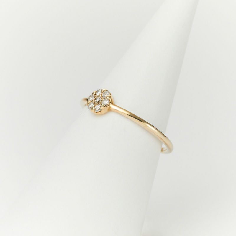 K10イエローゴールドのリングです。トータル0.1ctのダイヤモンドがお花のモチーフになった可愛らしいアイテムです。