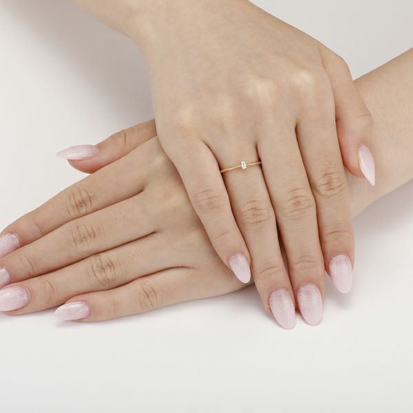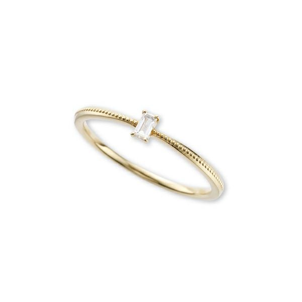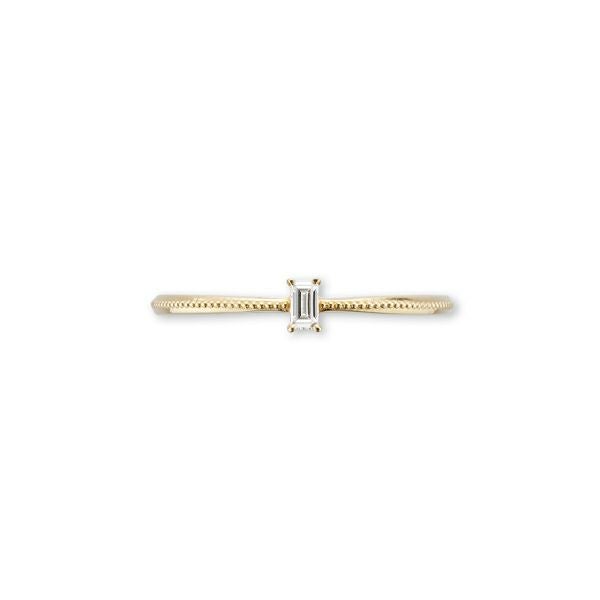 スクエアにカットされた一粒ダイヤモンドがクールでスタイリッシュな装い。シンプルを極めたデザインは、大人の女性の上品さを演出してくれる。