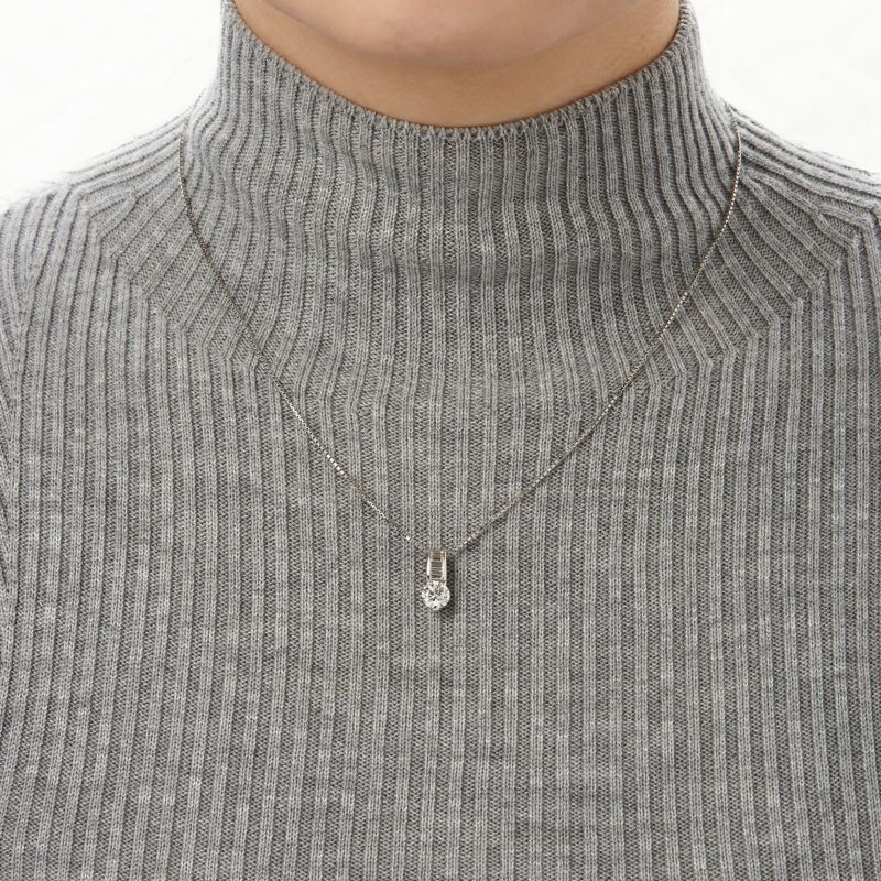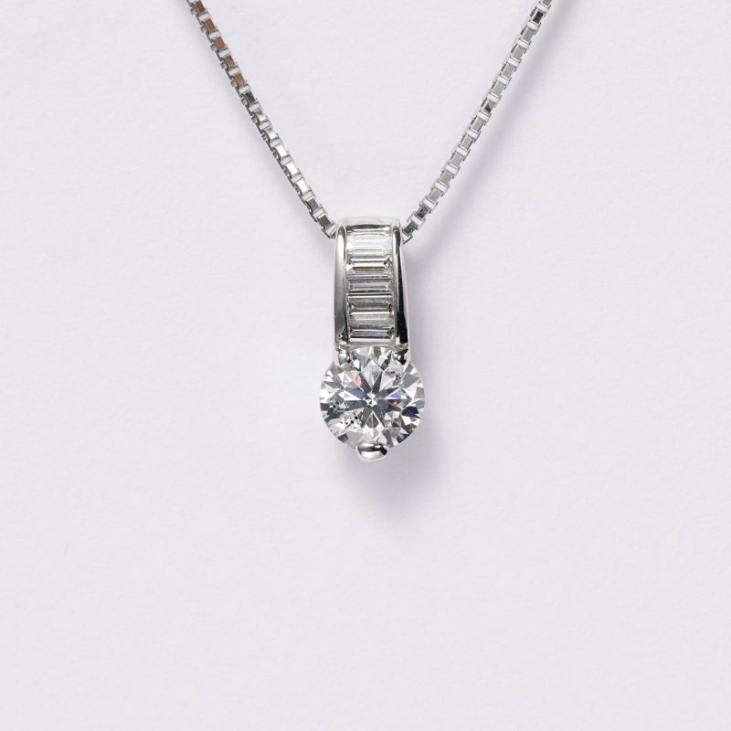 メインに1ctのダイヤを使用したダイヤモンドペンダントネックレス。バチカン部分のスクエアダイヤの輝きも楽しめる豪華なデザインです。