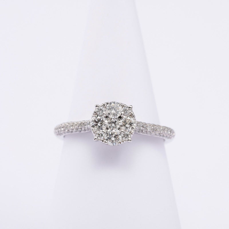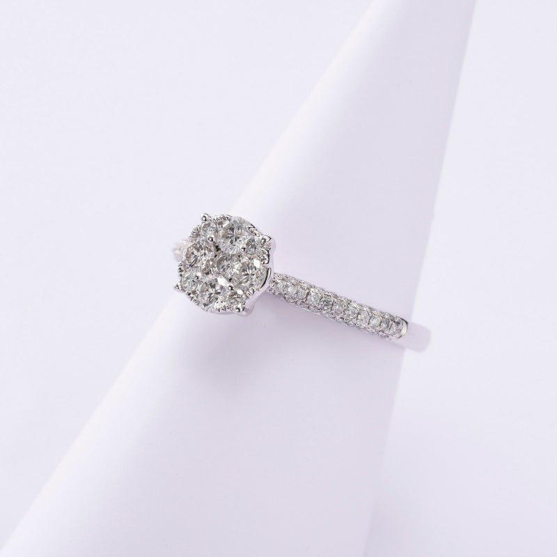 お花が咲き誇る春のヨーロッパの山々からインスピレーションを受けて、プラチナとダイヤモンドでリングをデザインしました。色々なところから光が入る、きらめくリングを長くご愛用いただけます。職人が丁寧に作成したリングをぜひお試しください。