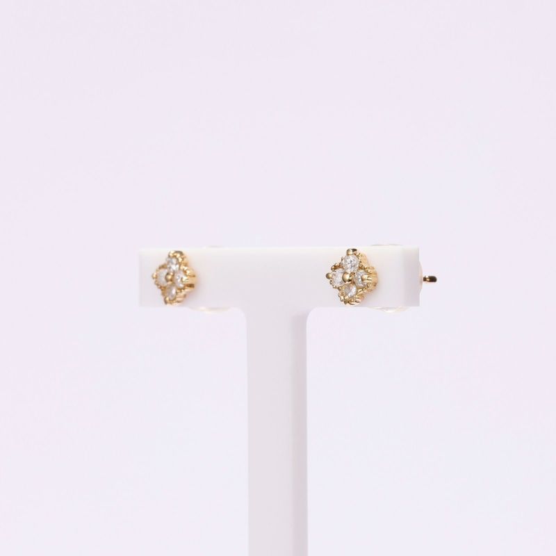 人気のフラワーモチーフピアスのご提案です。シンプルでありながら可愛いピアスが耳元を飾ります。