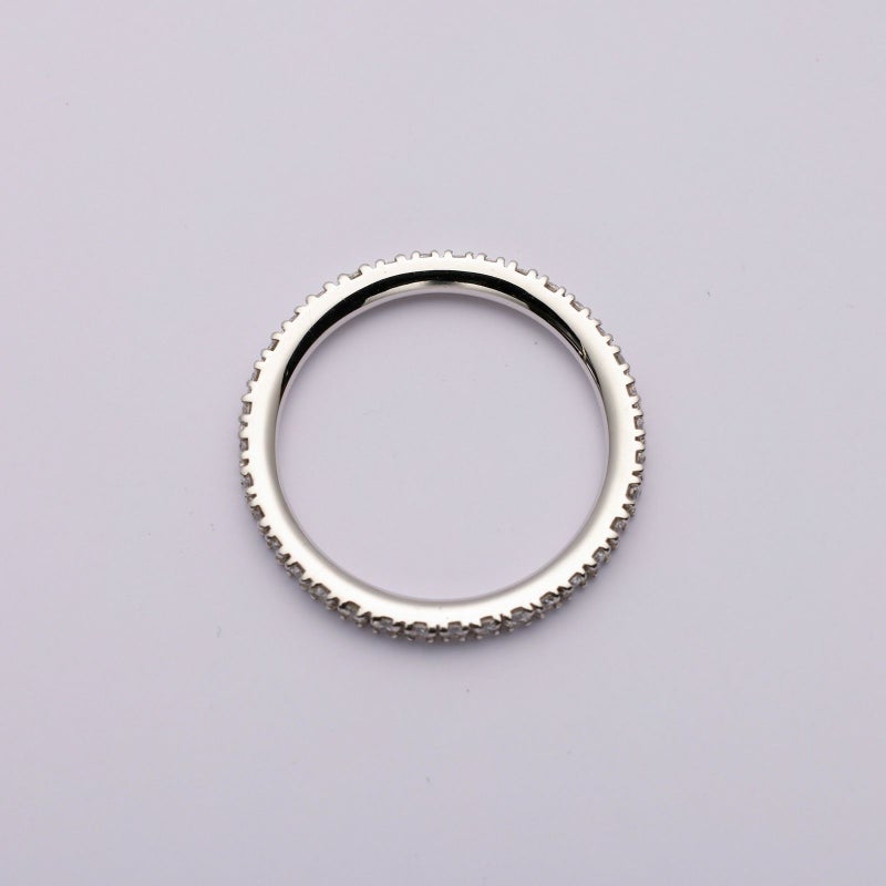 憧れのフルエタニティリングのご案内です。マイクロセッティングで、石が外れづらく末永くご愛用いただけます。裏表がないデザインは、指輪が回ってしまっても気にすることなくお召し頂けます。