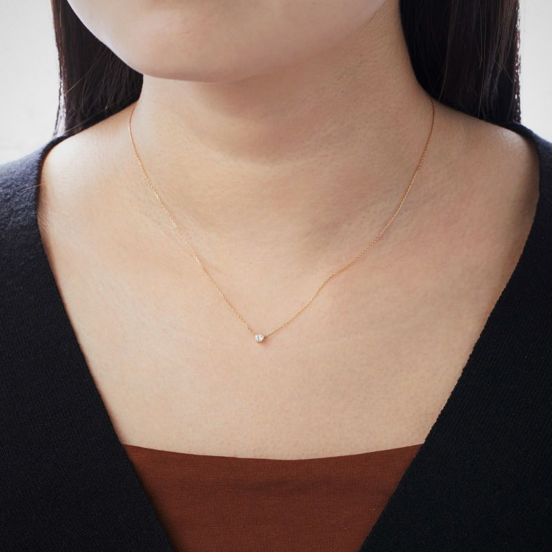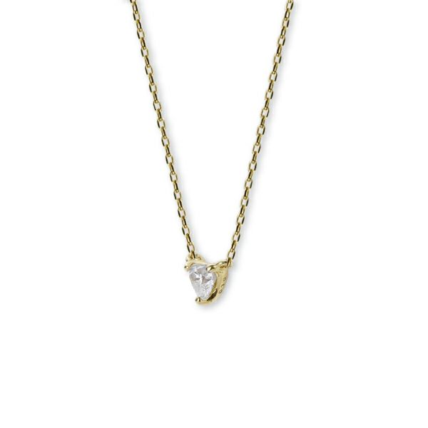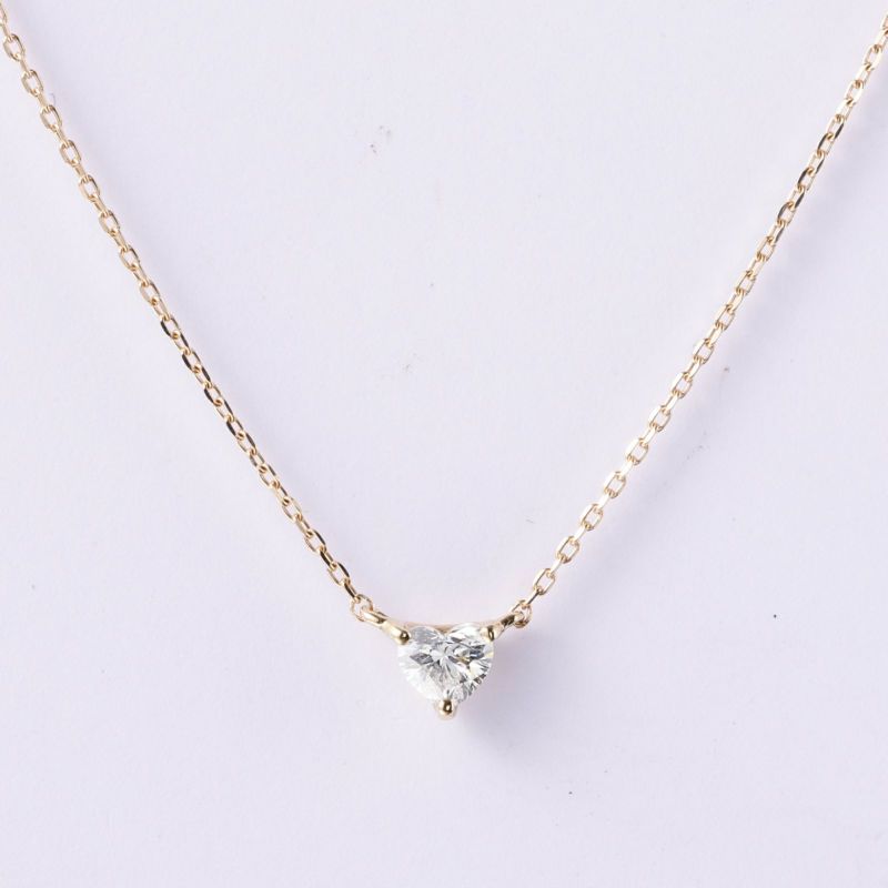 ハートシェープカットのダイヤモンド一石を使ったシンプルで可愛いペンダントのご紹介です。胸元のワンポイントになる人気のデザインです。