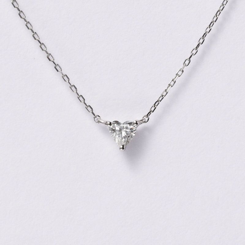 一粒ダイヤのシンプルなペンダントネックレスは周りと差がつくハートのダイヤ。おしゃれな普段使いに最適です。