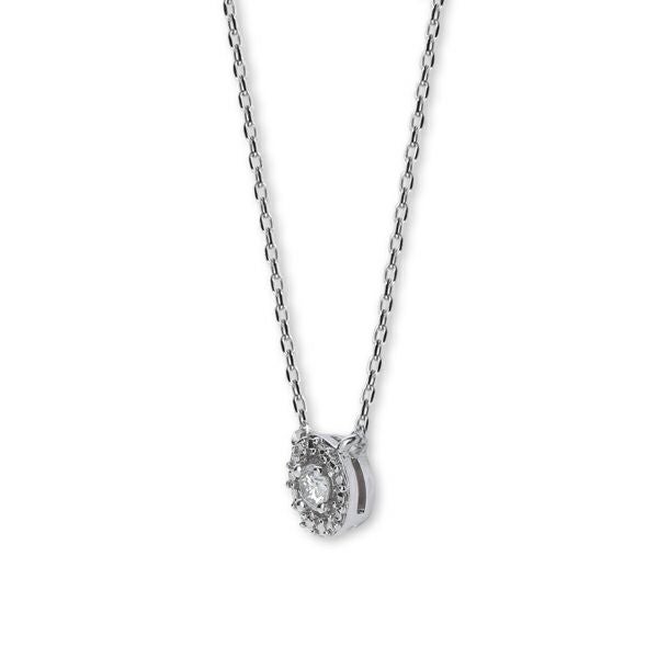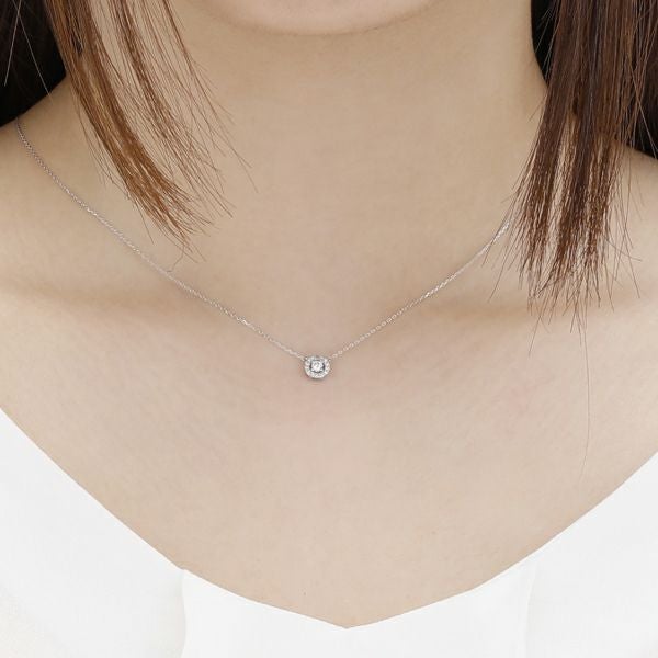 ダイヤモンドの周りに施されたカッティングがスタイリッシュなネックレス。華やかでボリューミーなデザインだから、特別な日に身につけたい。