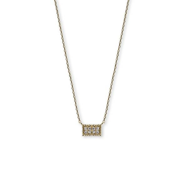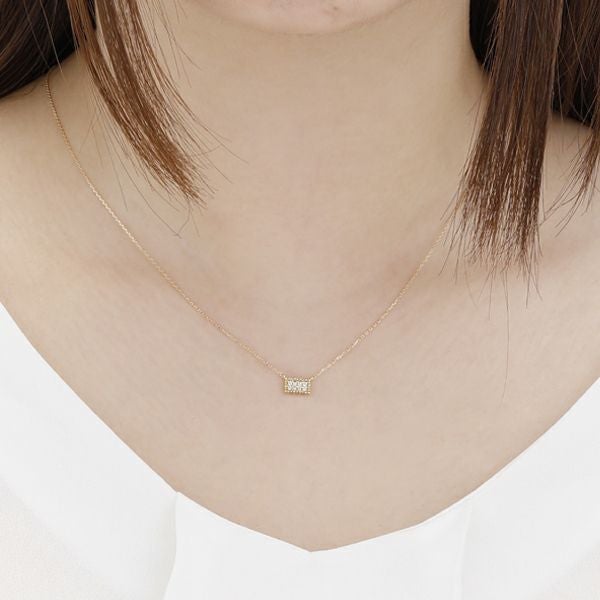 小さなダイヤモンドがぎっしり詰め込まれたネックレス。つけ心地も軽やかで繊細な作りで、胸元にキラリと光る個性をプラスしてくれる。