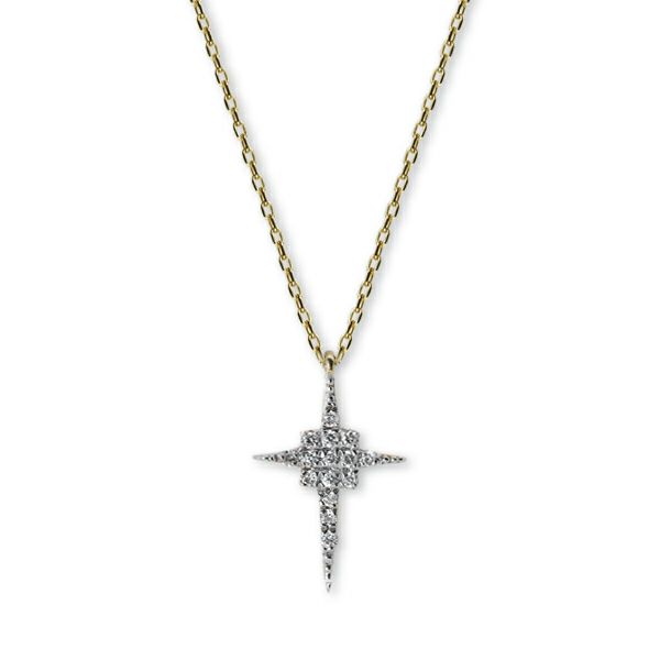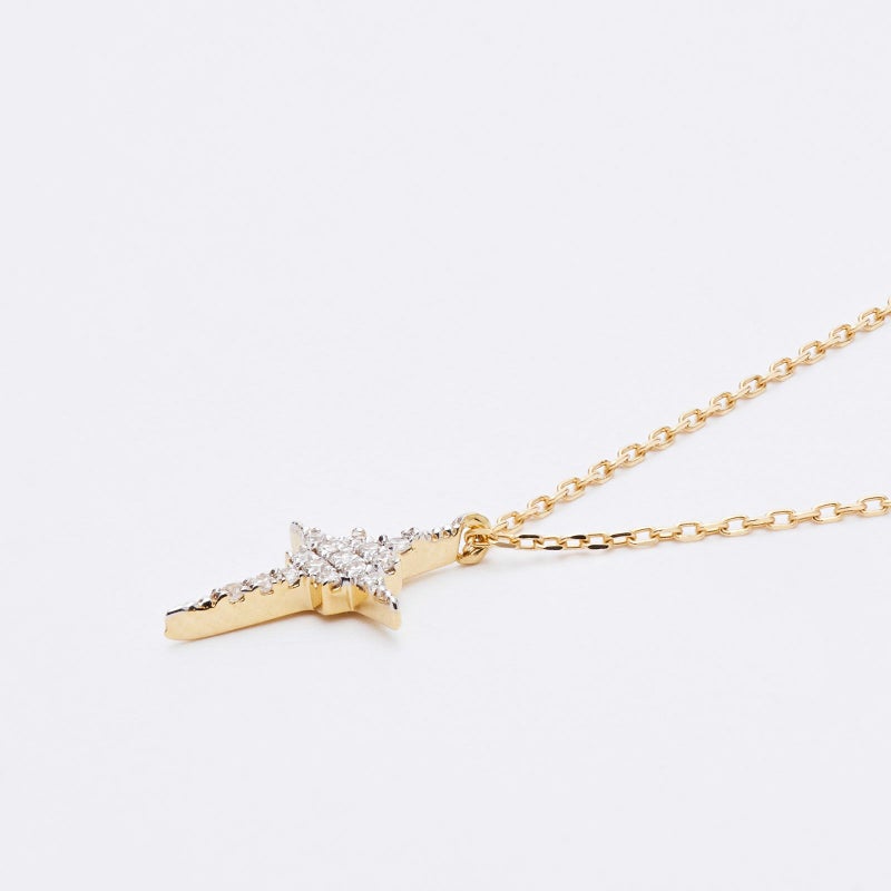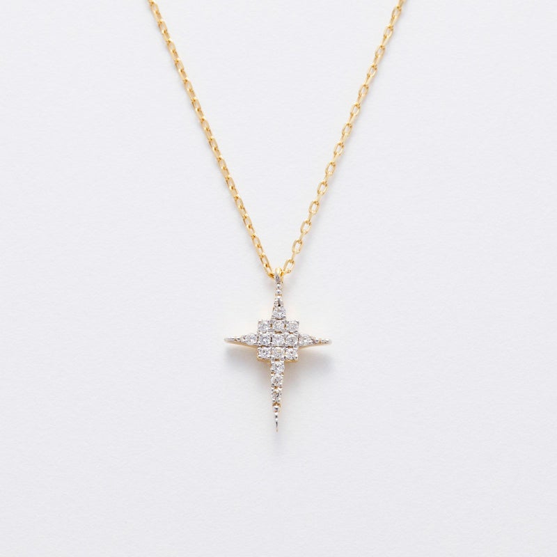 シャープなフォルムのクロスデザインネックレス。個性的なデザインはシンプルコーデののワンポイントに。