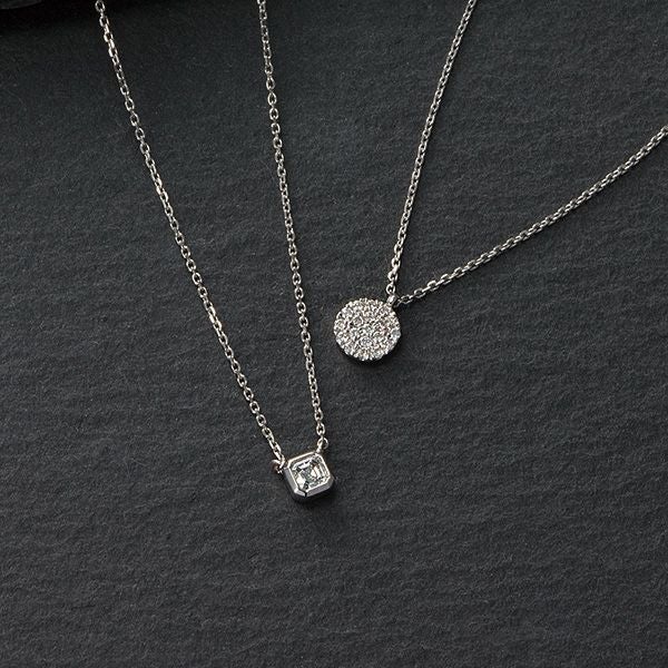 上質なプラチナ素材で作られたリュクスなネックレス。大粒なダイヤモンドをスクエアカットで贅沢に。