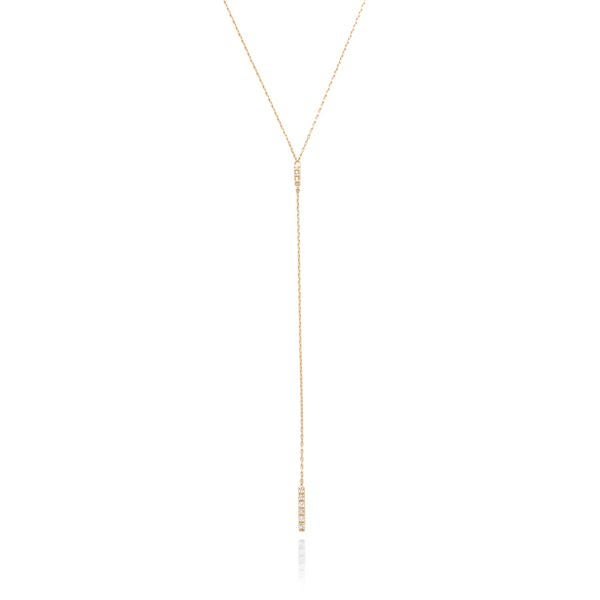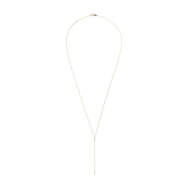 ロングチェーンとダイヤモンドが敷き詰められたバーがトレンド感たっぷりのネックレス。揺れる度にリッチな輝きを放つ、大人の女性にぴったりのコレクション。