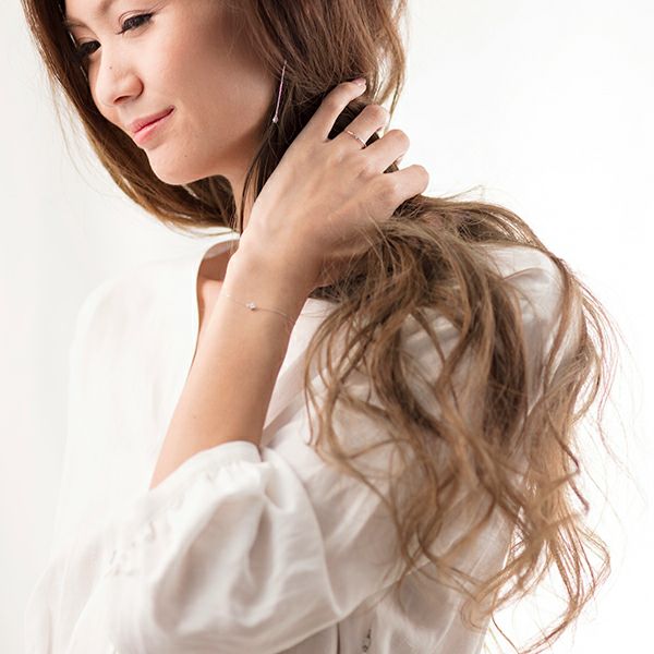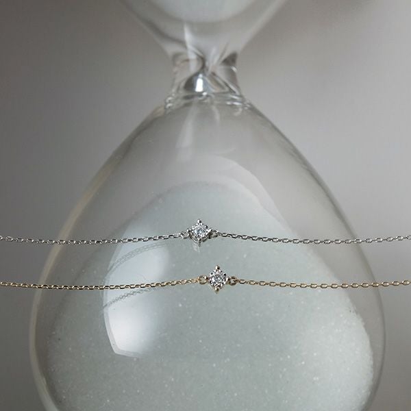 4本爪のダイヤモンドブレスレットは気負わずに着けられるサイズ感が人気。普段のコーディネートにプラスするだけで女性らしさも気分もグッとあがる。