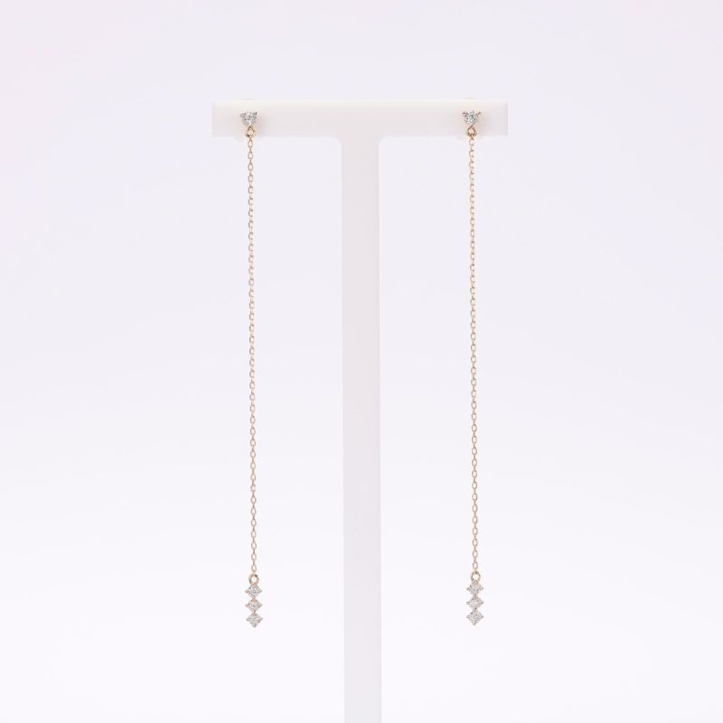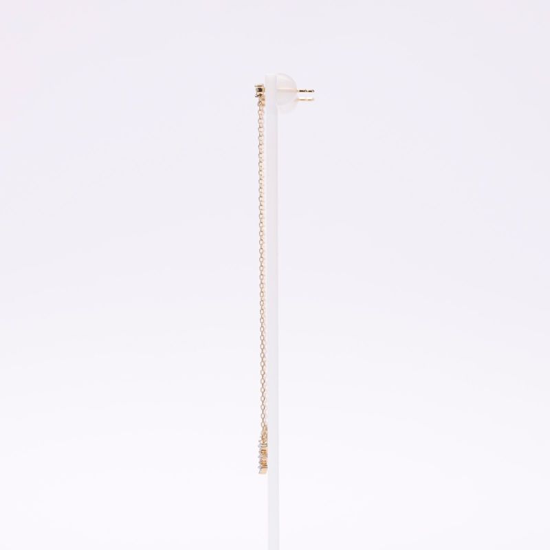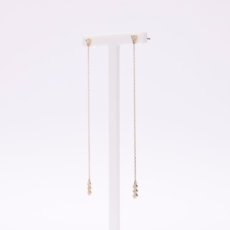 K18イエローゴールドのロングチェーンピアスです。サラサラ揺れるピアスはフェミニンな装いにピッタリです。上品なピアスはどんな場面でもお召いただけます。