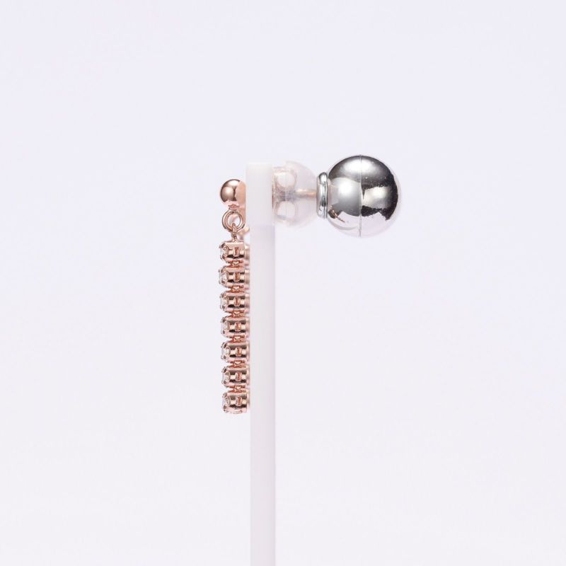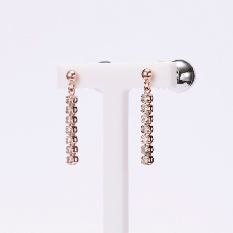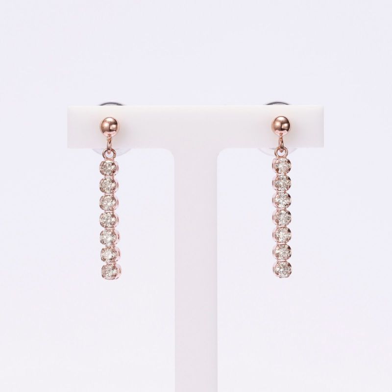 K18ピンクゴールド使用。メレサイズダイヤモンドを縦に並べたピアスです。動くたび流れるようにキラキラと輝きます。