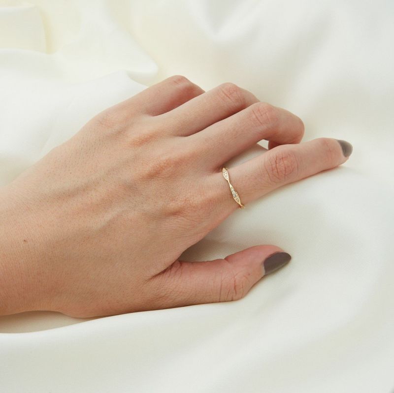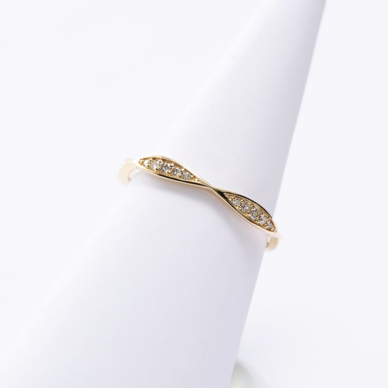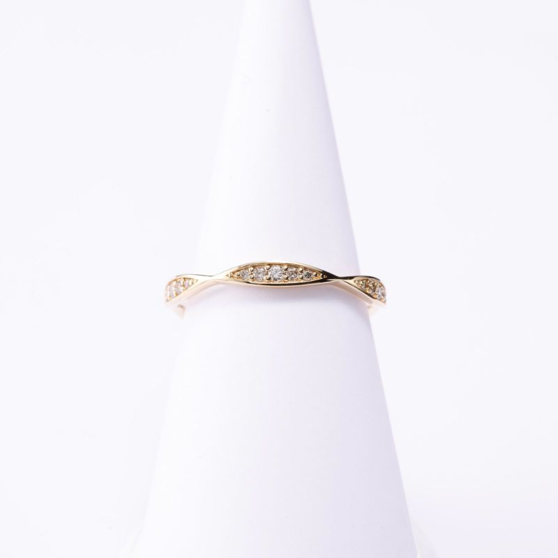 K18イエローゴールドと小粒のダイヤモンドのリングです。さり気なく身に付けられるデザインになっております。