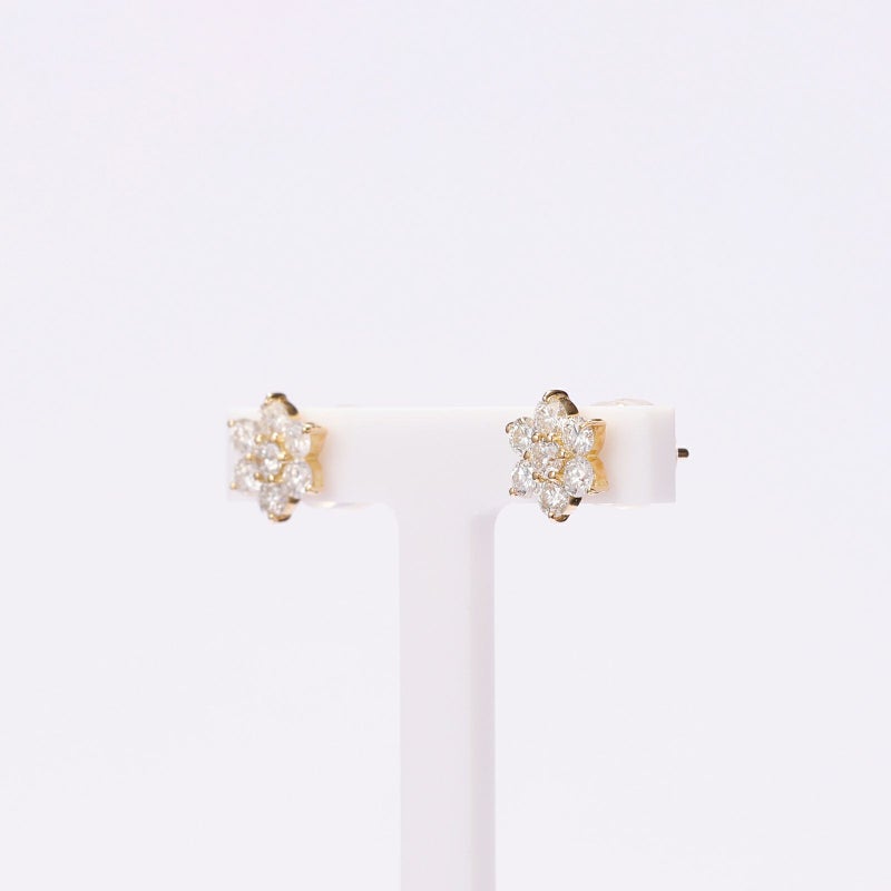 7粒のダイヤモンドでフラワーのモチーフダイヤモンドピアスにしました。光に当たるとキラキラと輝きます。