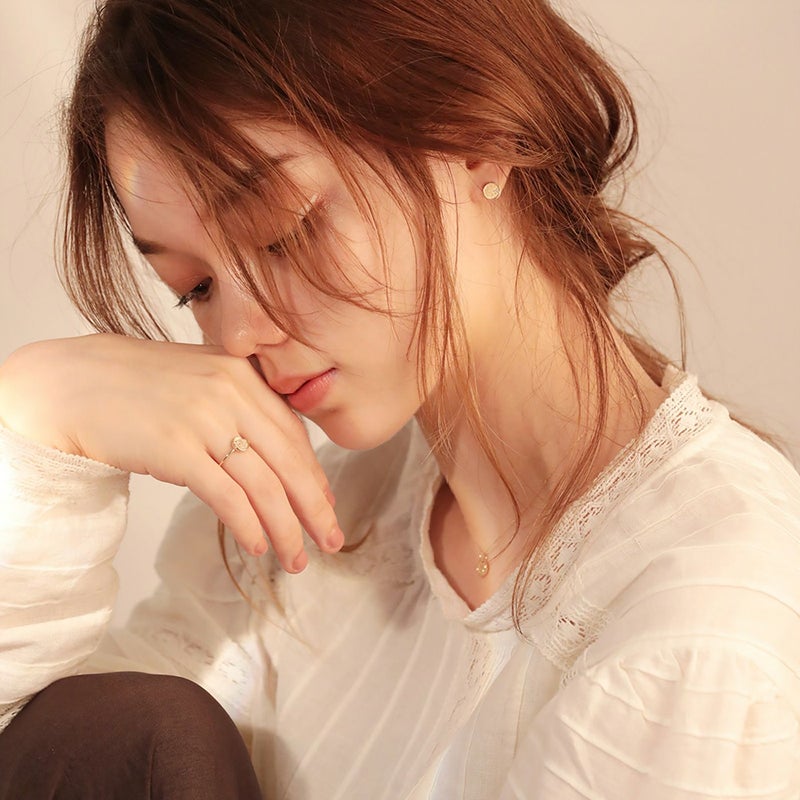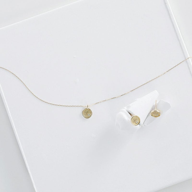 コインモチーフにダイヤモンドを1石留めた、品のあるデザインです。カジュアルながらも、どんな場面でも使っていただきやすいピアスに仕上がっています。