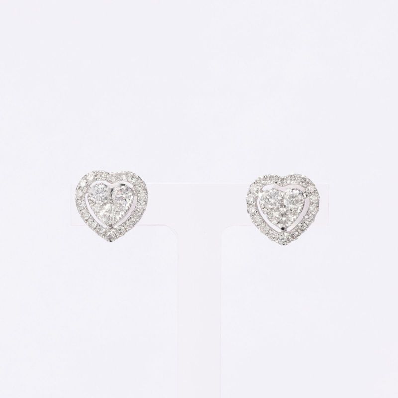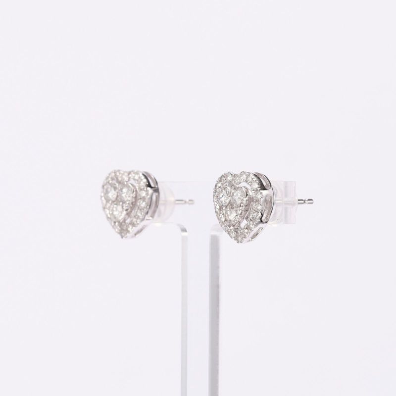 3石のハートの周りを、メレで囲みました。すべてがダイヤモンドで埋め尽くされていますので、耳元で光を集めて輝きます。デコレーションケーキのような華やかで豪華なピアスをお召ください。