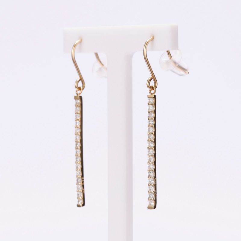メレサイズダイヤモンドを縦に並べたバータイプのピアスです。直線的なダイヤモンドのデザインは、耳元をシャープに彩ります。