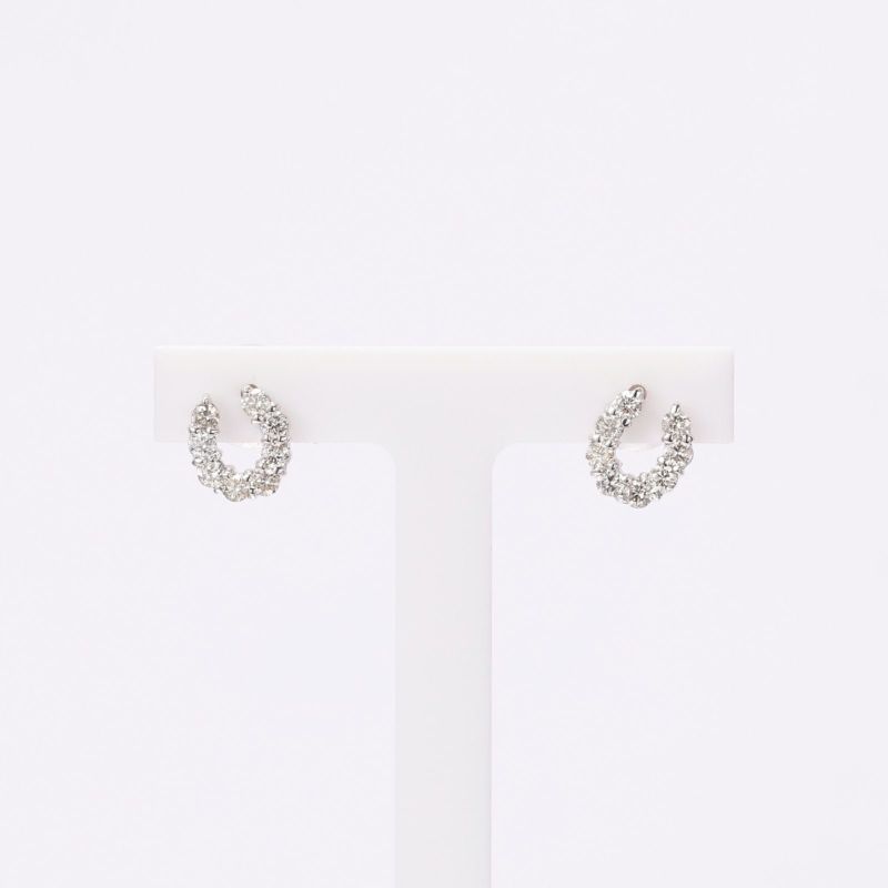 馬蹄のデザインいっぱいにダイヤモンドをセッティングしました。馬蹄のデザインは、幸せを貯める幸運のモチーフといわれています。キラキラの馬蹄モチーフを耳元でお召しください。