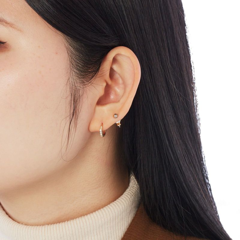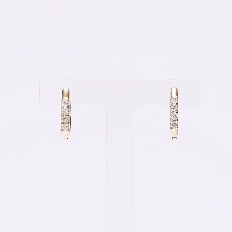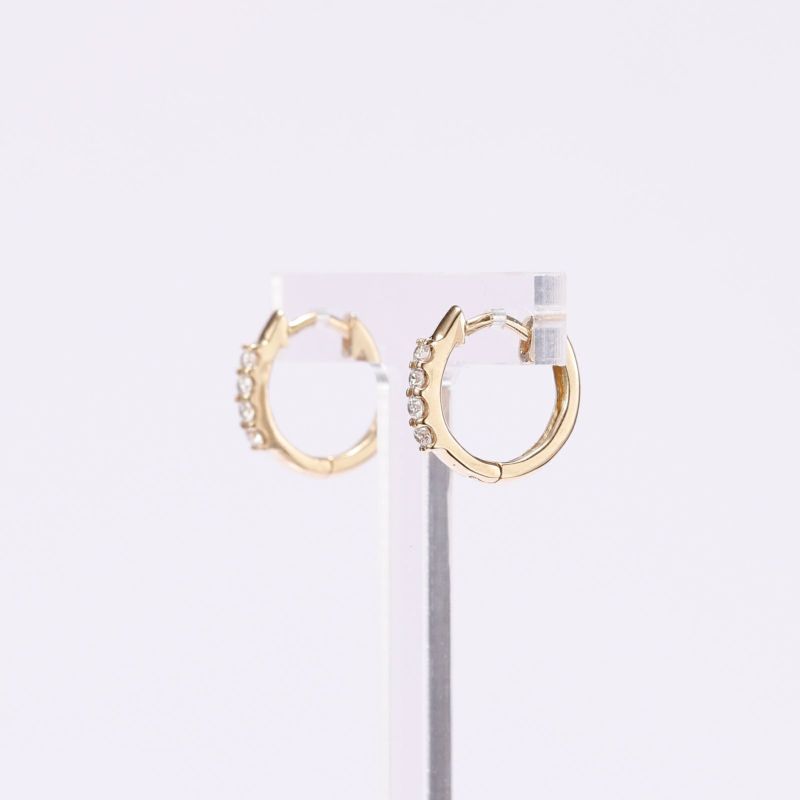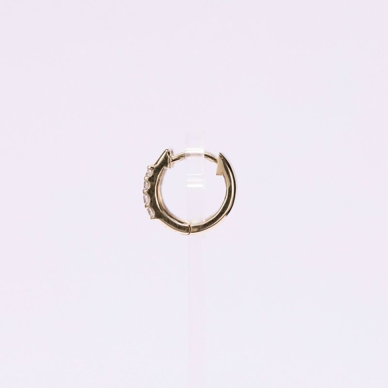 K18イエローゴールドの小振りなフープピアスにダイヤを配しました。ダイヤがきれいに光り、上品な雰囲気のピアス。どなたにもおすすめです。