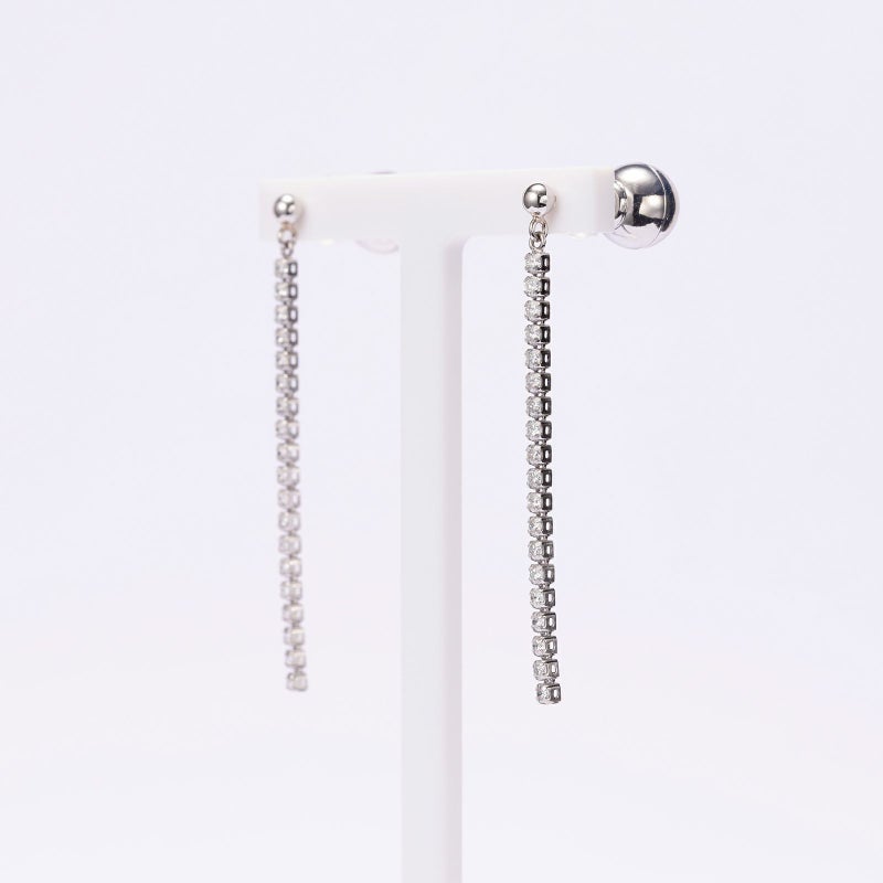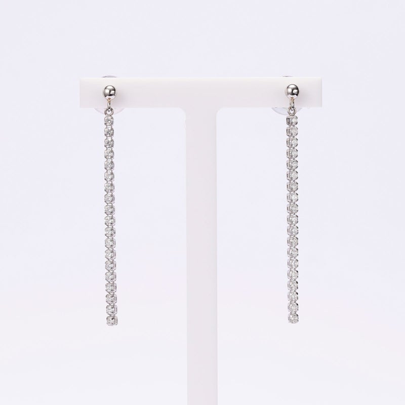 ダイヤモンドを0.5カラット縦に並べたピアスのご紹介です。しなやかに流れるダイヤモンドは揺れるたびにキラキラ輝いて、お顔回りを上品に演出してくれます。
