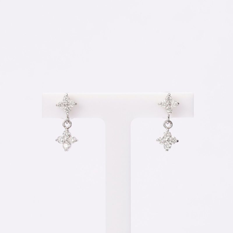 小さなお花を縦に繋げた品のあるピアスです。1本の茎から2輪の花を咲かせる可愛らしいニリンソウをモチーフに仕上げました。協力、友情、といった意味があり贈り物にも最適です。