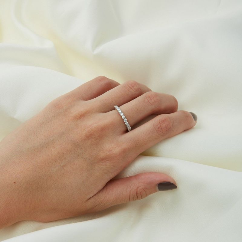 プラチナ900に12粒のメレサイズダイヤモンドをセッティングしたラインリングです。透明感のあるダイヤモンドが光り輝く豪華なデザインです。