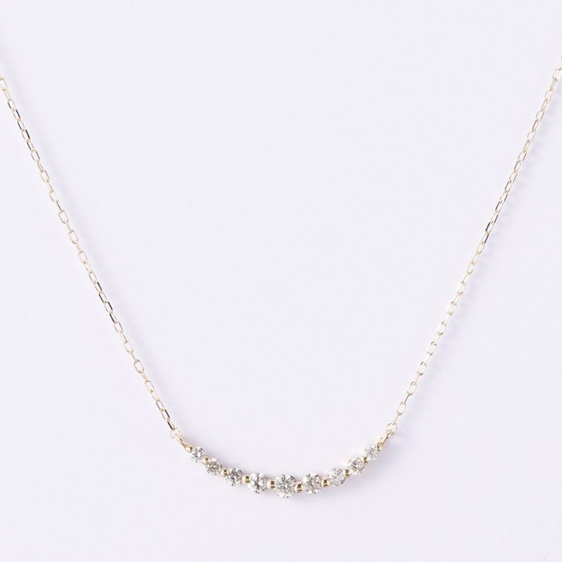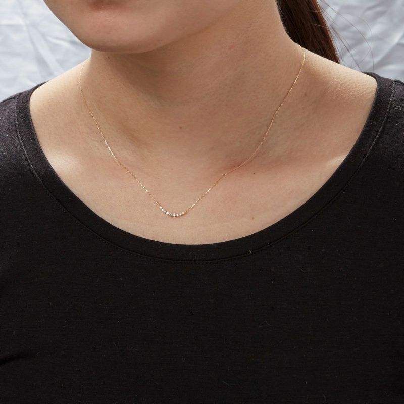 デコルテを綺麗に見せてくれるグラデーションタイプのK18イエローゴールドラインネックレスです。さり気ない装いにぜひお試しください。