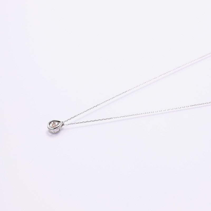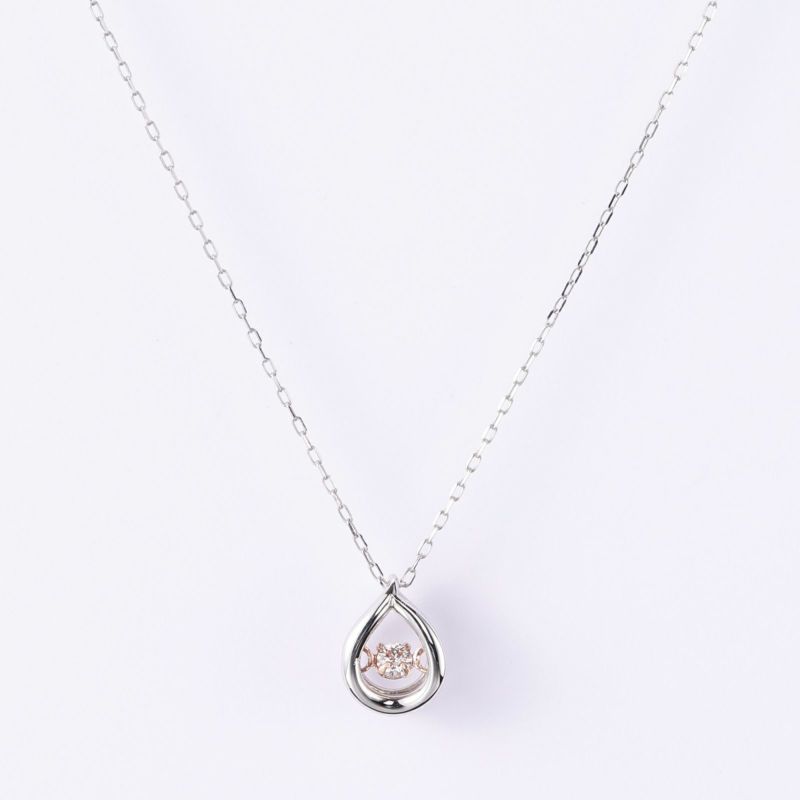 梅雨型のモチーフにピンクダイヤモンドをセッティングしたネックレスです。2本目には揺れるピンクダイヤモンドをぜひお試しください。