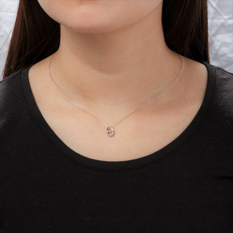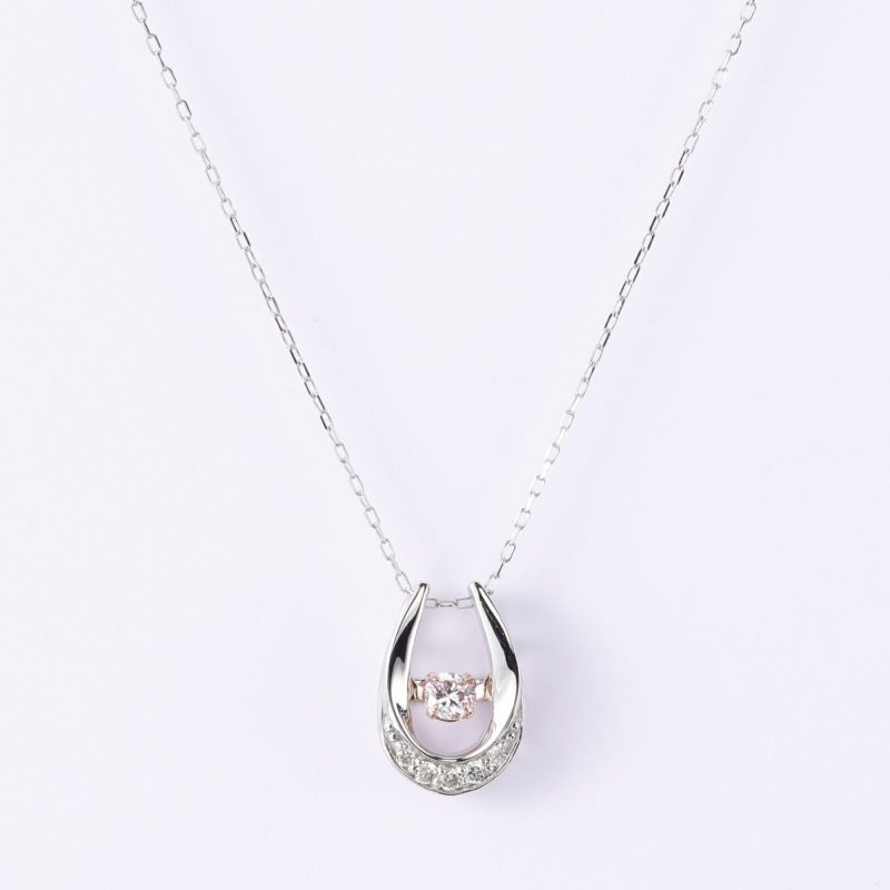 馬蹄型のモチーフにピンクダイヤモンドをセッティングしたネックレスです。馬蹄には幸せを貯めるという意味があります。時代を問わずに使用いただけるモチーフなので、何世代にもわたってご愛用いただけます。