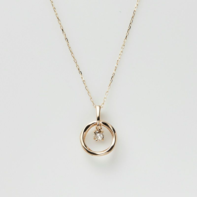 揺れるダイヤに目を奪われるダンシングストーンのK10イエローゴールドペンダント。シンプルな円形のデザインはどんな装いともマッチします。石が引き立つ新型のダンシングストーンペンダントです。