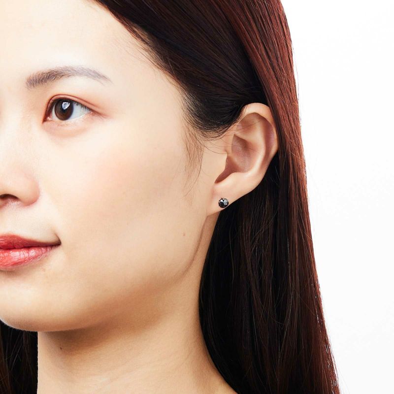 プラチナのブラックダイヤモンド1粒ピアス。1.0ctものブラックダイヤモンドが上品なピアスです。