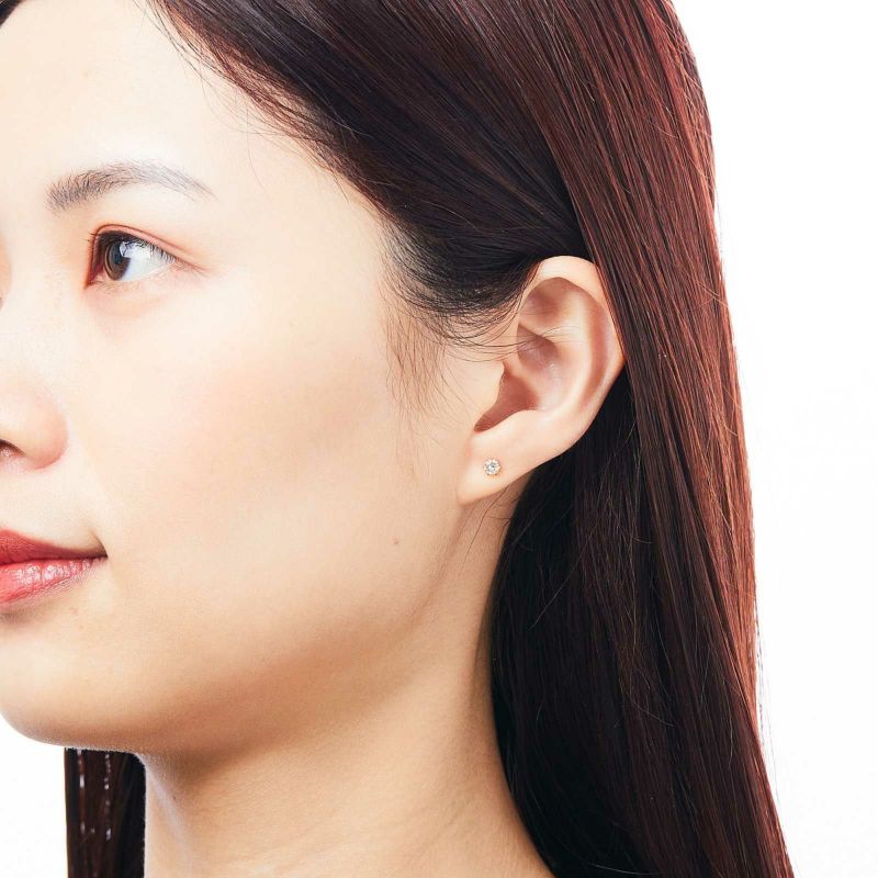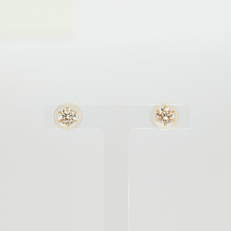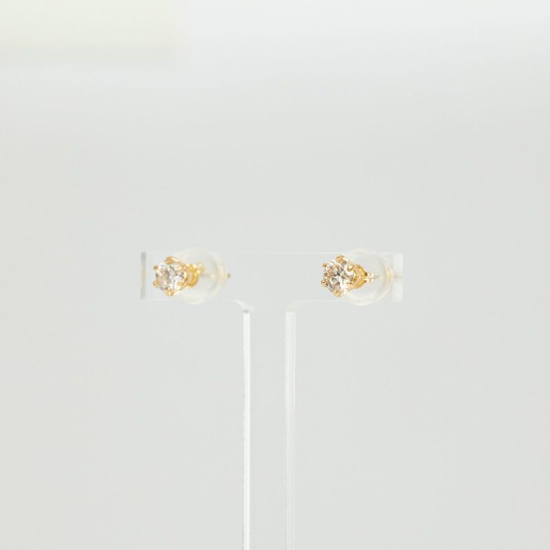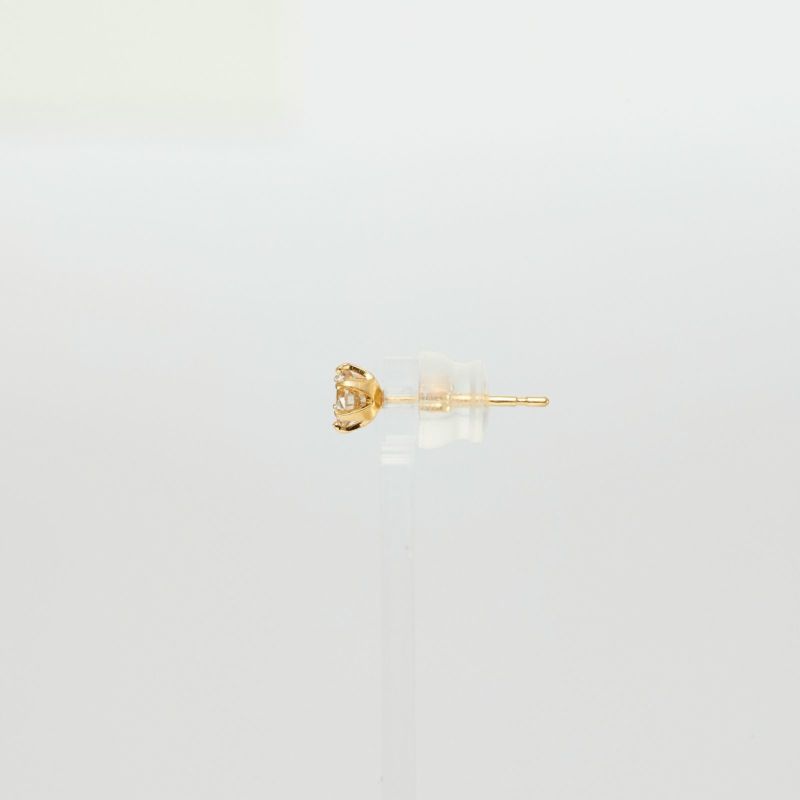 K18イエローゴールドのダイヤモンド1粒ピアス。0.3ctの6本爪のシンプルだけど美しく耳元で輝きます。