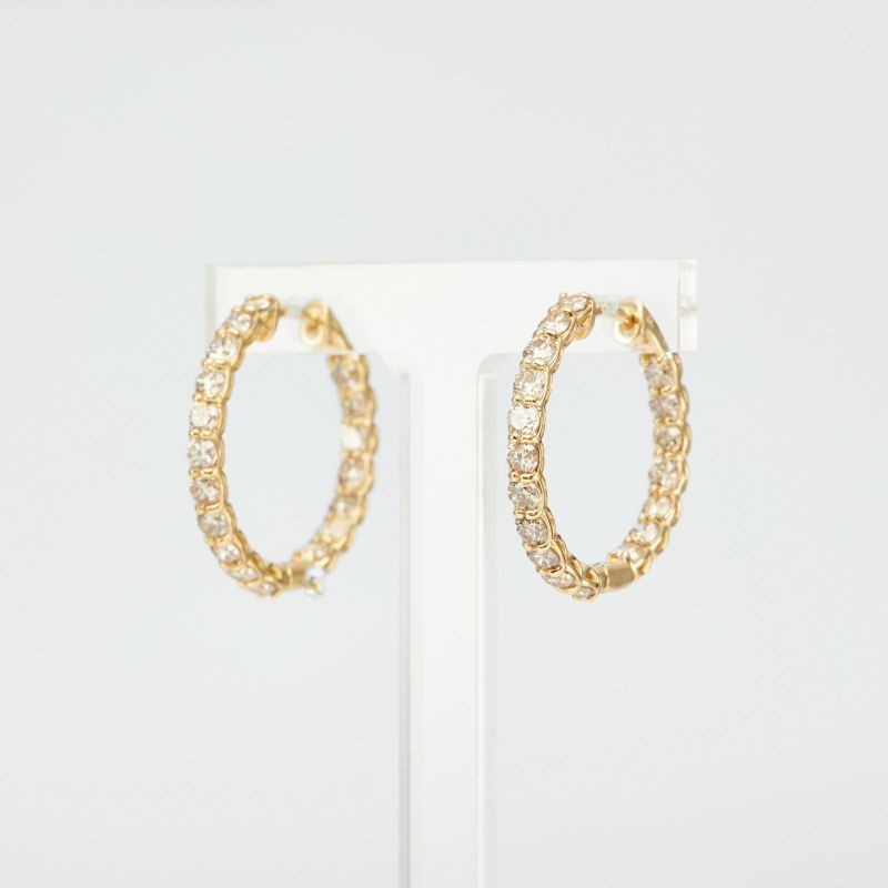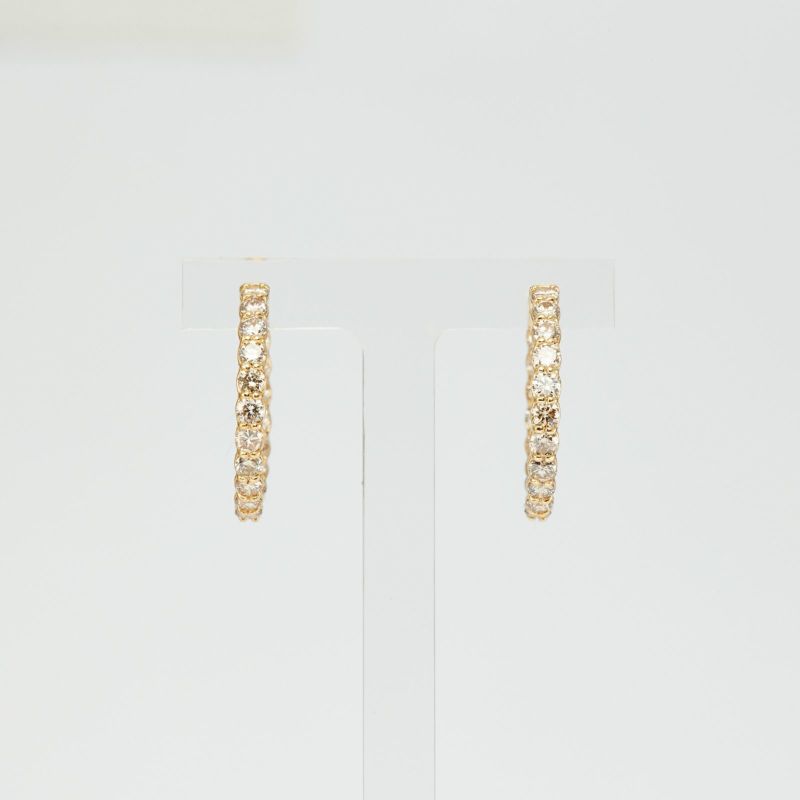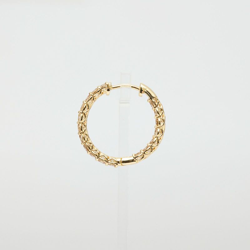 K18イエローゴールドのラインフープピアス。合計1.0ctのダイヤモンドが上品に耳元で輝く華やかなアイテムです。