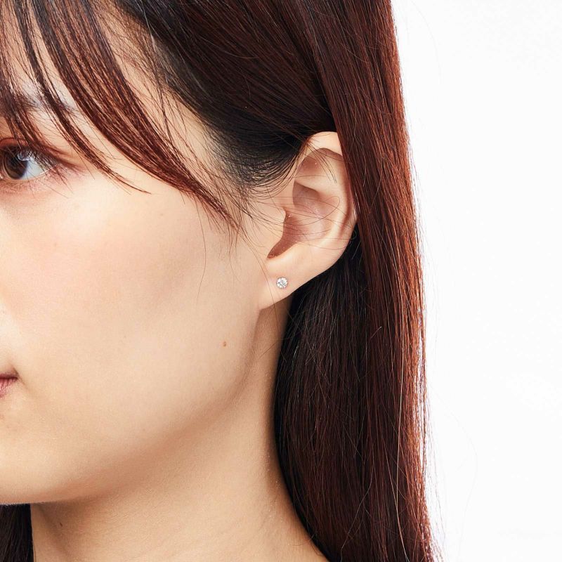 プラチナのダイヤモンド1粒ピアス。合計0.3ctのダイヤモンドを6本爪で留めたシンプルながら使いやすいアイテムです。