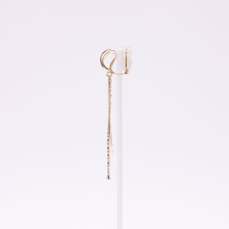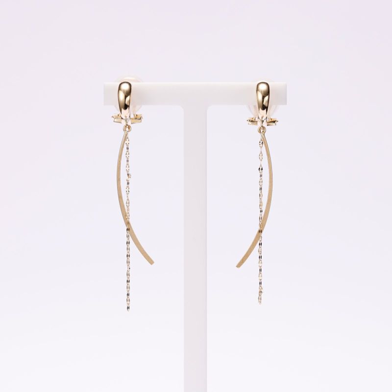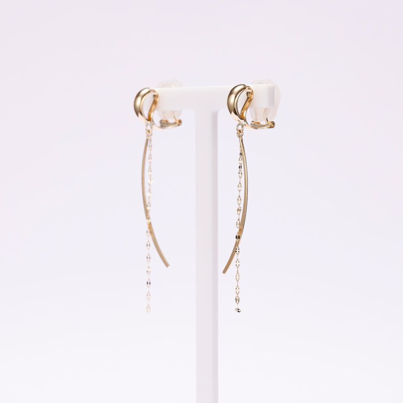 丸みがかったバーとデザインのあるチェーンを使用した、大人の雰囲気がある揺れるイヤリングです。