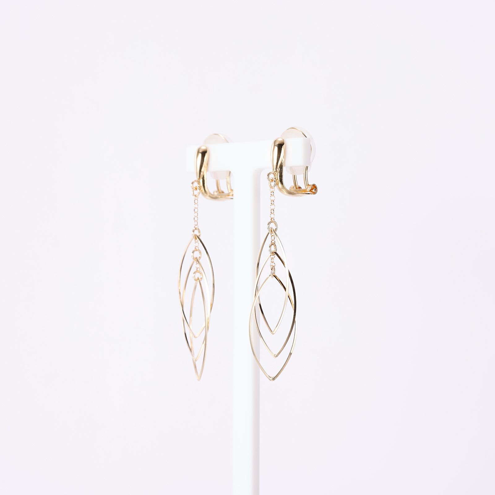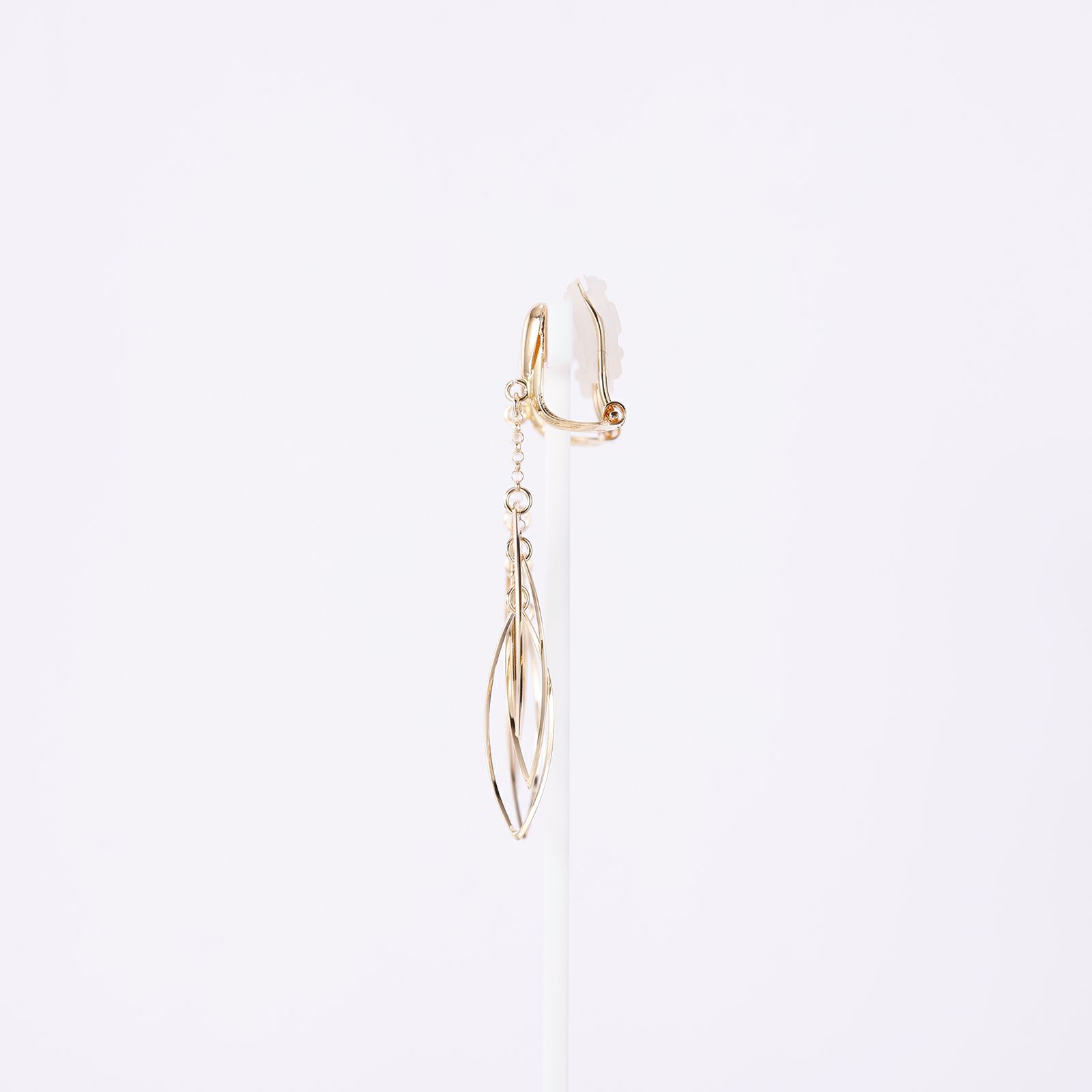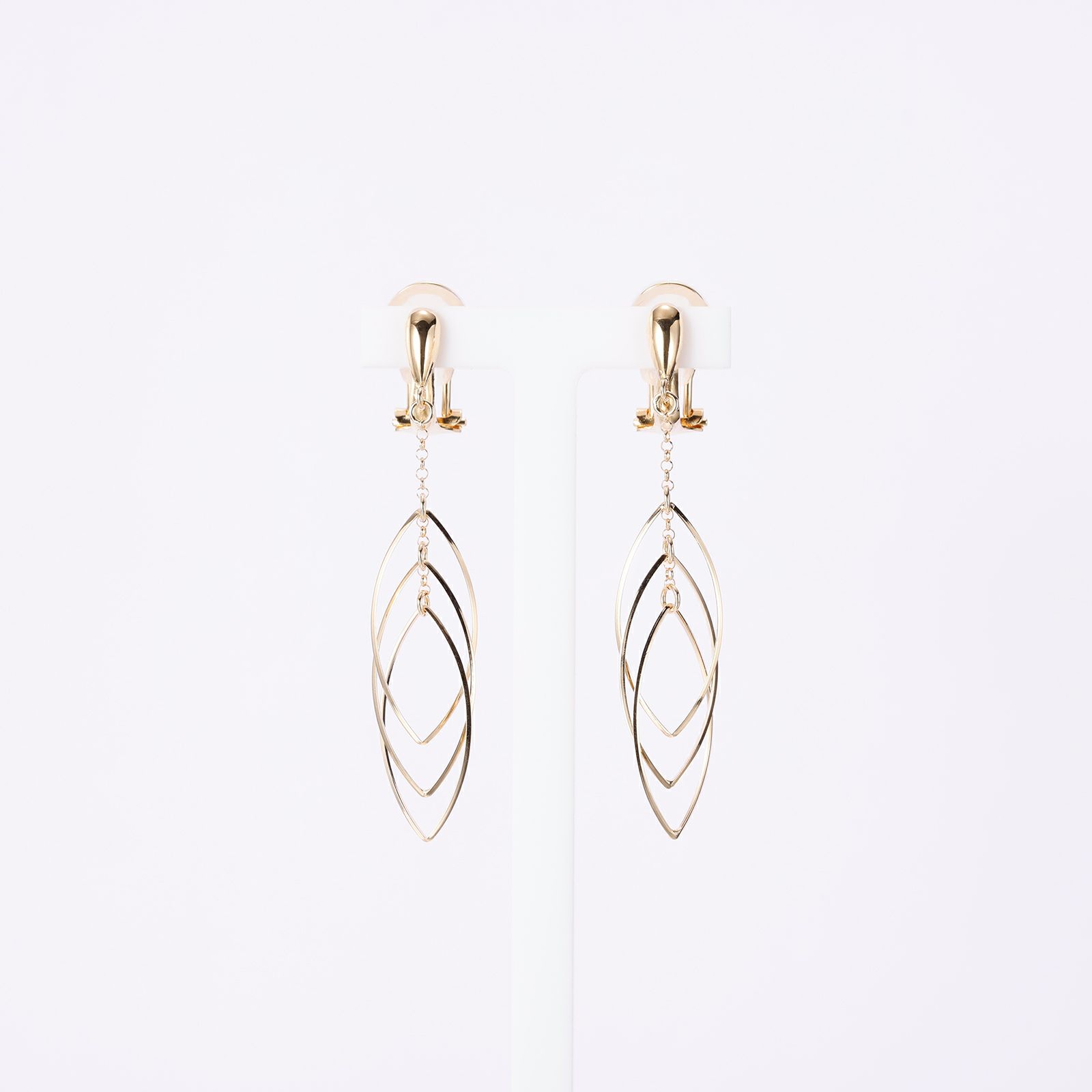 リーフのモチーフを3枚重ねたイヤリングをデザインしました。絶妙にかみ合った3枚のモチーフは、長めに揺れ女性らしさの象徴となります。