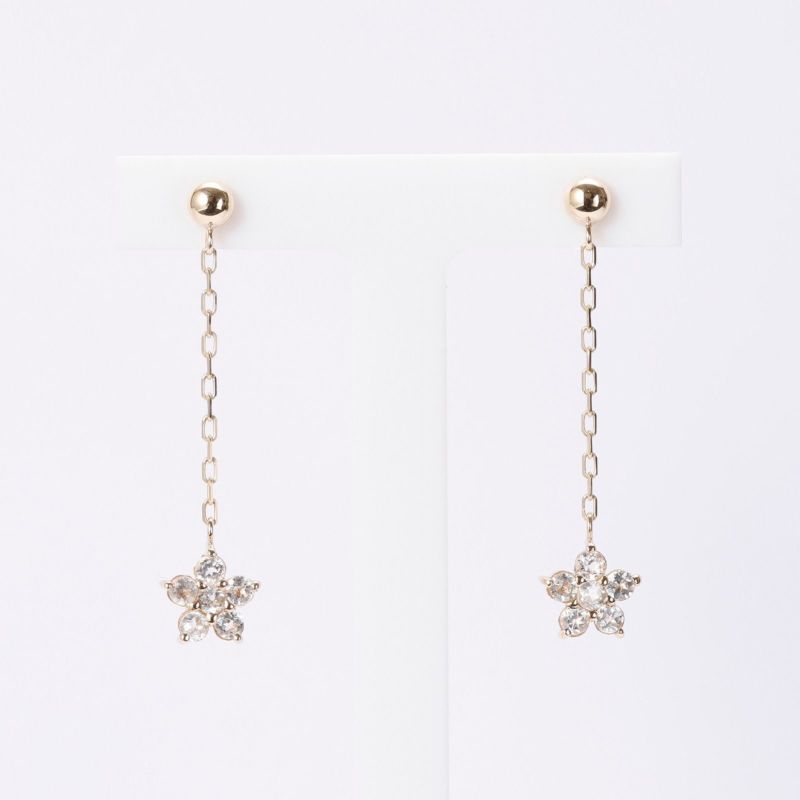 ーhanabiー夜空に咲く冬の花火をモチーフに、ホワイトトパーズでピアスをデザインしました。耳元でゆらゆら揺れて、華やかな顔回りを演出します。