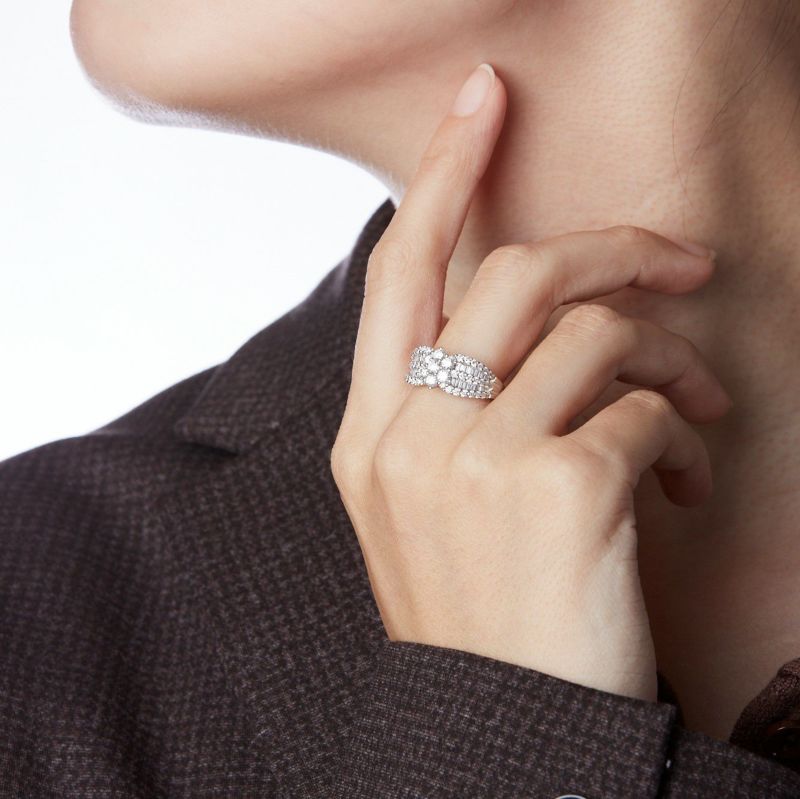 お花が咲き誇る春のヨーロッパの山々からインスピレーションを受けて、K18ホワイトゴールドとダイヤモンドでリングをデザインしました。色々なところから光が入る、きらめくリングを長くご愛用いただけます。職人が丁寧に作成したリングをぜひお試しください。