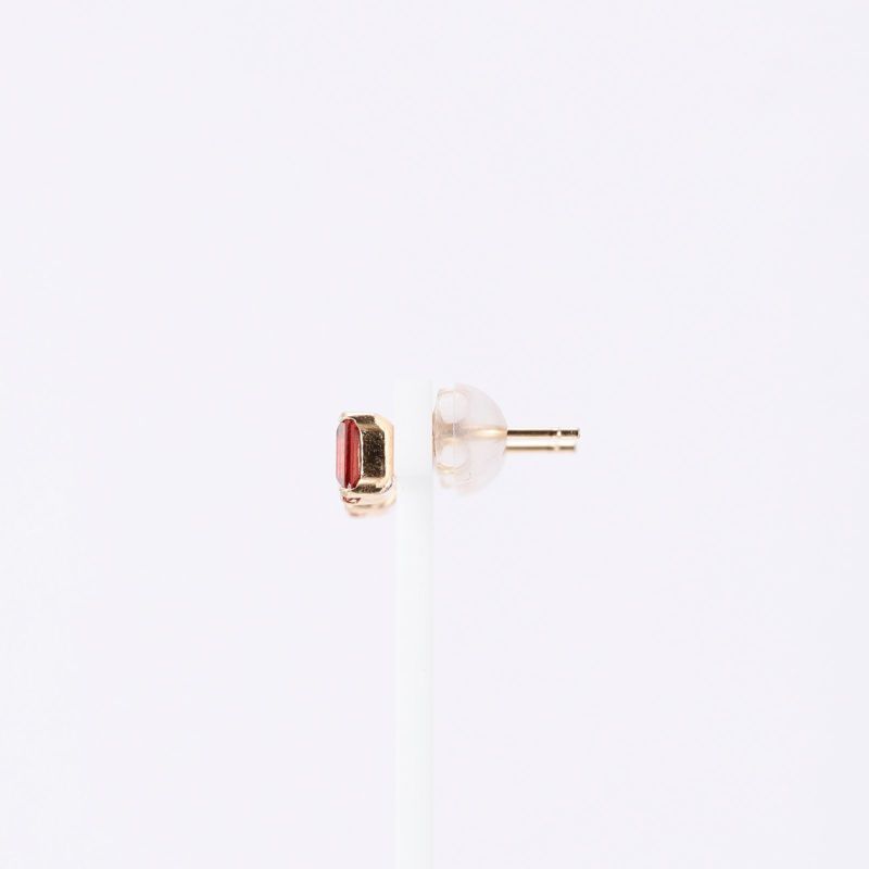 スクエアのガーネットをK18イエローゴールドのピアスに仕上げました。シンプルなピアスは天然石の色味を楽しんで頂けるよう、最小限の装飾にしてあります。赤い美しい質感をお楽しみください。
