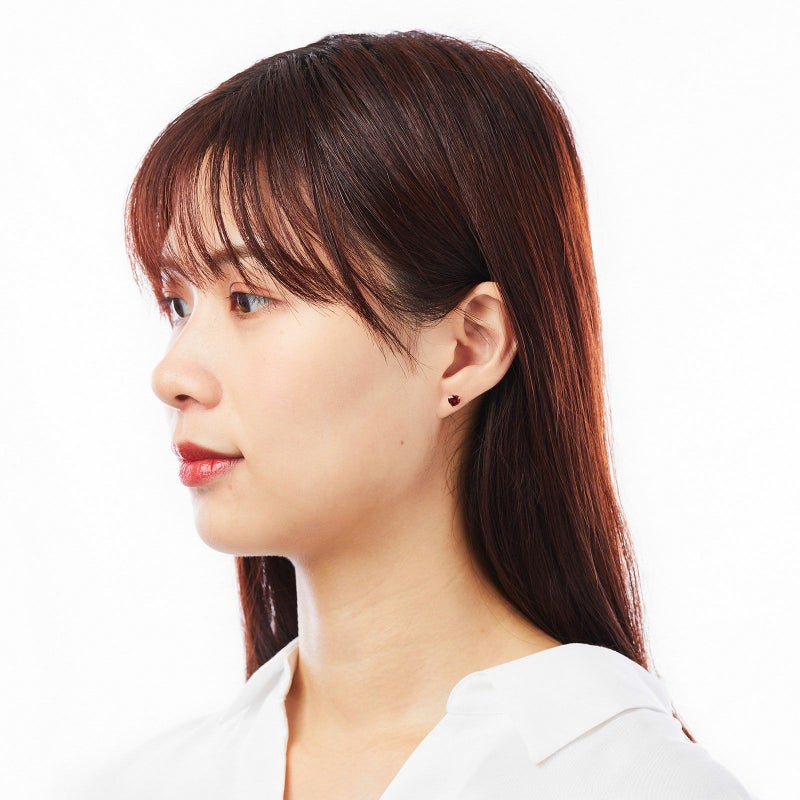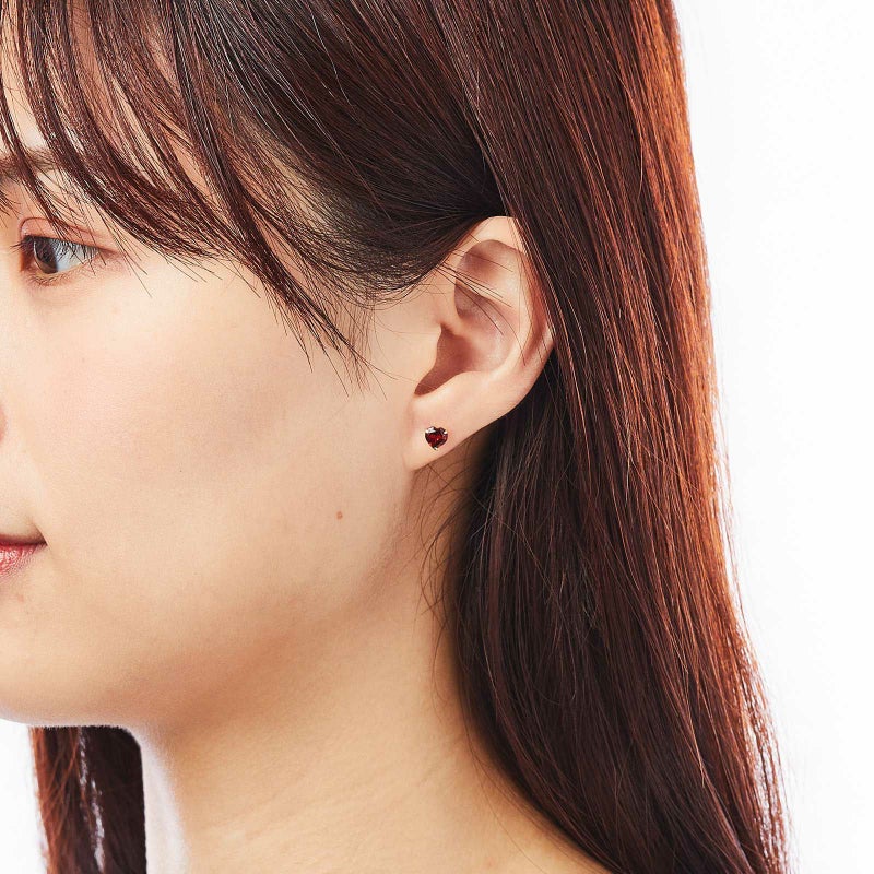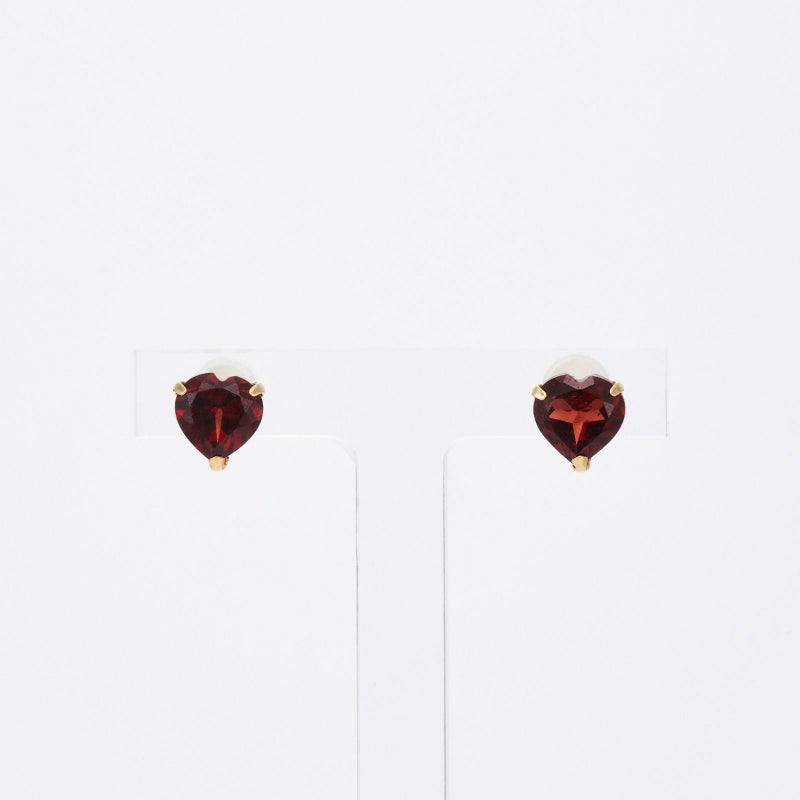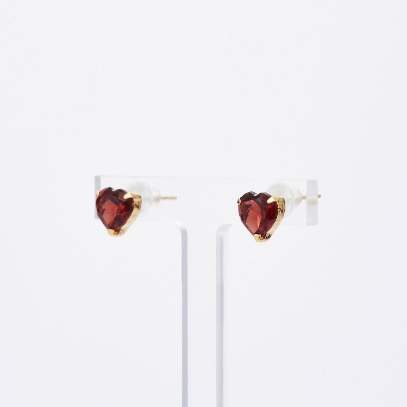 K18イエローゴールドのロードライトガーネットピアス。ハートシェイプのロードライトガーネットが可愛らしく耳元を彩ります。