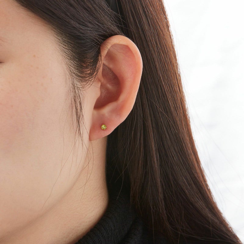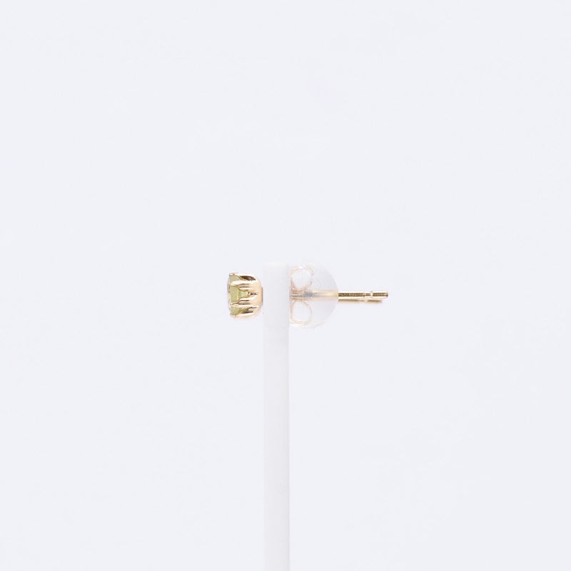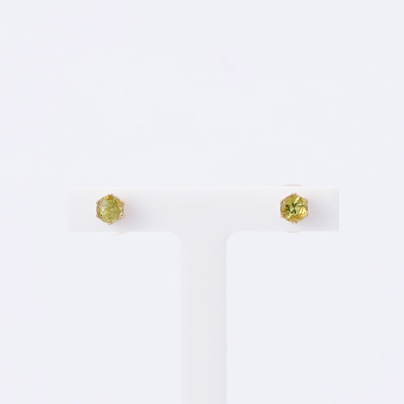 ラウンドのペリドットをシンプルな6本爪にセッティングした定番のピアスです。8月の誕生石です。