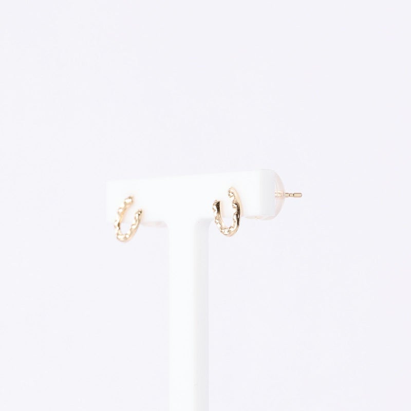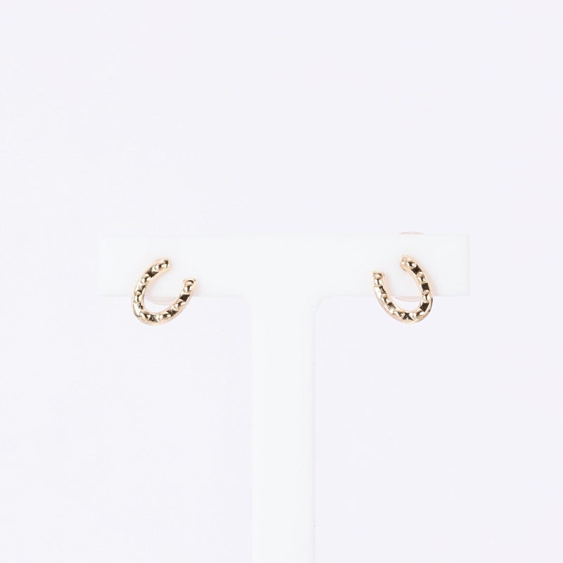 馬蹄のピアスを地金でデザインしました。幸せを貯めると言われる昔からのラッキーモチーフを身に着けてみてください。