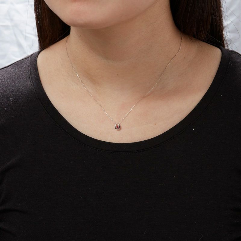 馬蹄型のモチーフにルビーをセッティングしたネックレスです。時代を問わずに使用いただけるデザインです。12ヶ月分のご用意がございます。