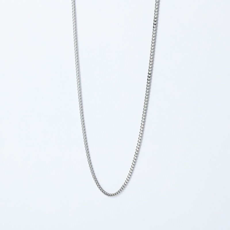 純プラチナを使用した2面喜平のご紹介です。プラチナならではの黒っぽい品のある輝きを放ちます。どんな場面でも合わせて頂きやすい、オーセンティックなデザインを一度お試しください。