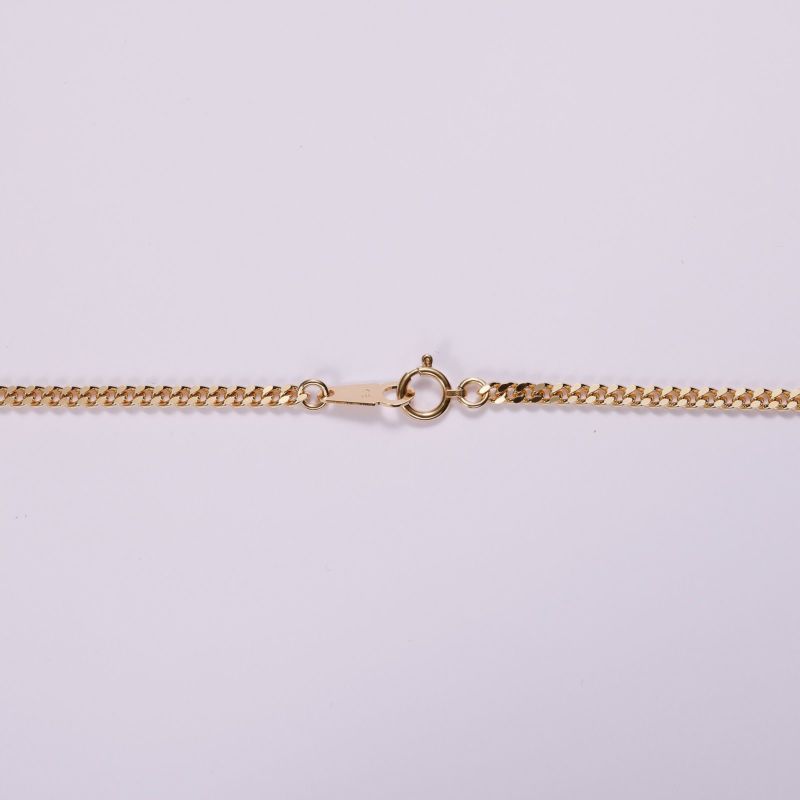 上下にカットを施した2面カット喜平です。K18イエローゴールドの輝きを楽しんで頂けます。シンプルなチェーンはユニセックスにご愛用いただけます。独立行政法人造幣局の検定マーク(※ホールマーク)入り。