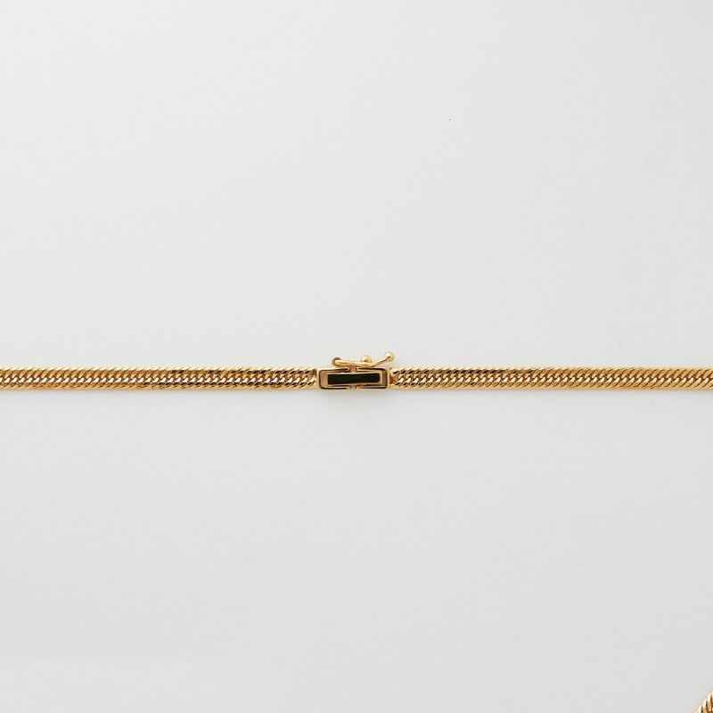 上下左右にカットを施した、輝きのある12面カット喜平です。幅広く見え、カットが多い分輝きが増す細やかなチェーンが特徴です。シンプルなチェーンはユニセックスにご愛用いただけます。独立行政法人造幣局の検定マーク(※ホールマーク)入り。