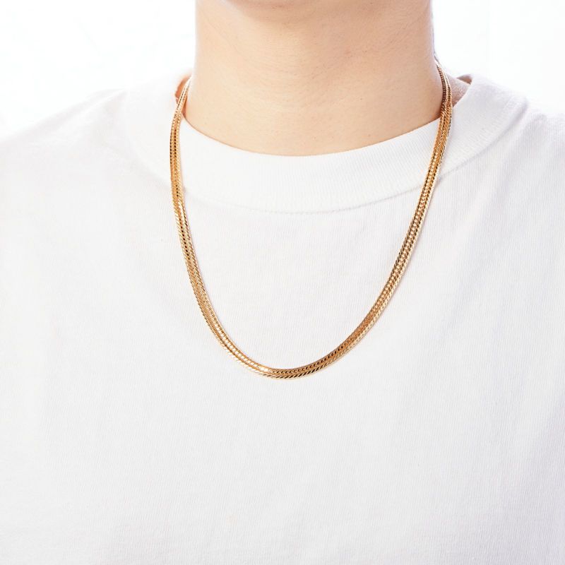 上下左右にカットを施した12面カット喜平です。K18イエローゴールドの輝きを楽しんで頂けます。シンプルなチェーンはユニセックスにご愛用いただけます。独立行政法人造幣局の検定マーク(※ホールマーク)入り。